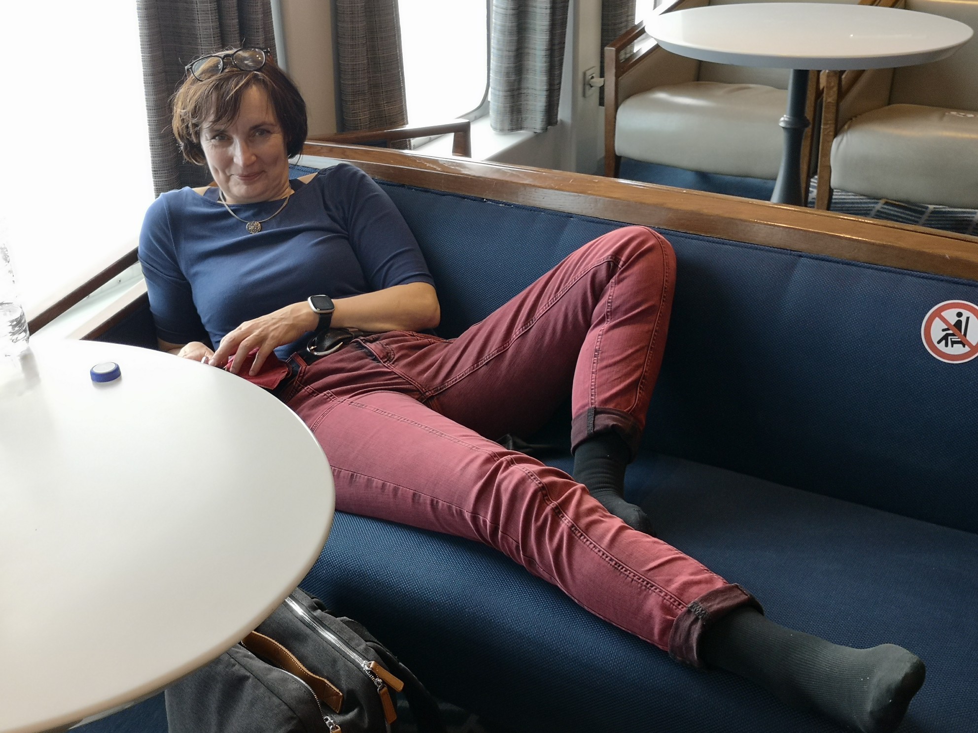 There were hardly any passengers on the Superferry. October is not a time for travelling, summer is actually over. The beaches were empty. But the climate was pleasant, you could have easily sat on deck, it was just a bit uncomfortable. Only hard chairs. So we could stretch out on the sofa in the lounge.