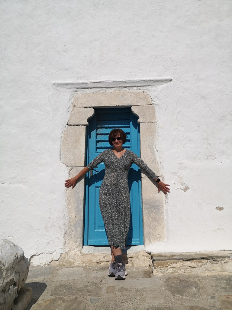 The landlady of my Airbnb met me at the so-called Manto Statue. I overlooked it at first and wandered around the old harbour, ended up at Mykonos Castle and was almost in the hustle and bustle of this town. The locals kept sending me: straight then right. Did they mean in a circle? By chance, I discovered the inconspicuous statue and actually had only a few minutes left until the meeting. I could have consulted Google, but I couldn’t because I had used up all my October data at that very moment. There was FREE WiFi at the statue. How cheap! The landlady led me straight through winding alleys to my studio. Next challenge: How am I supposed to find it again when I’m wandering around in this labyrinth? So the accommodation is right in the middle of it. You open the door and you’re already in bed. But otherwise super nice and tastefully furnished.