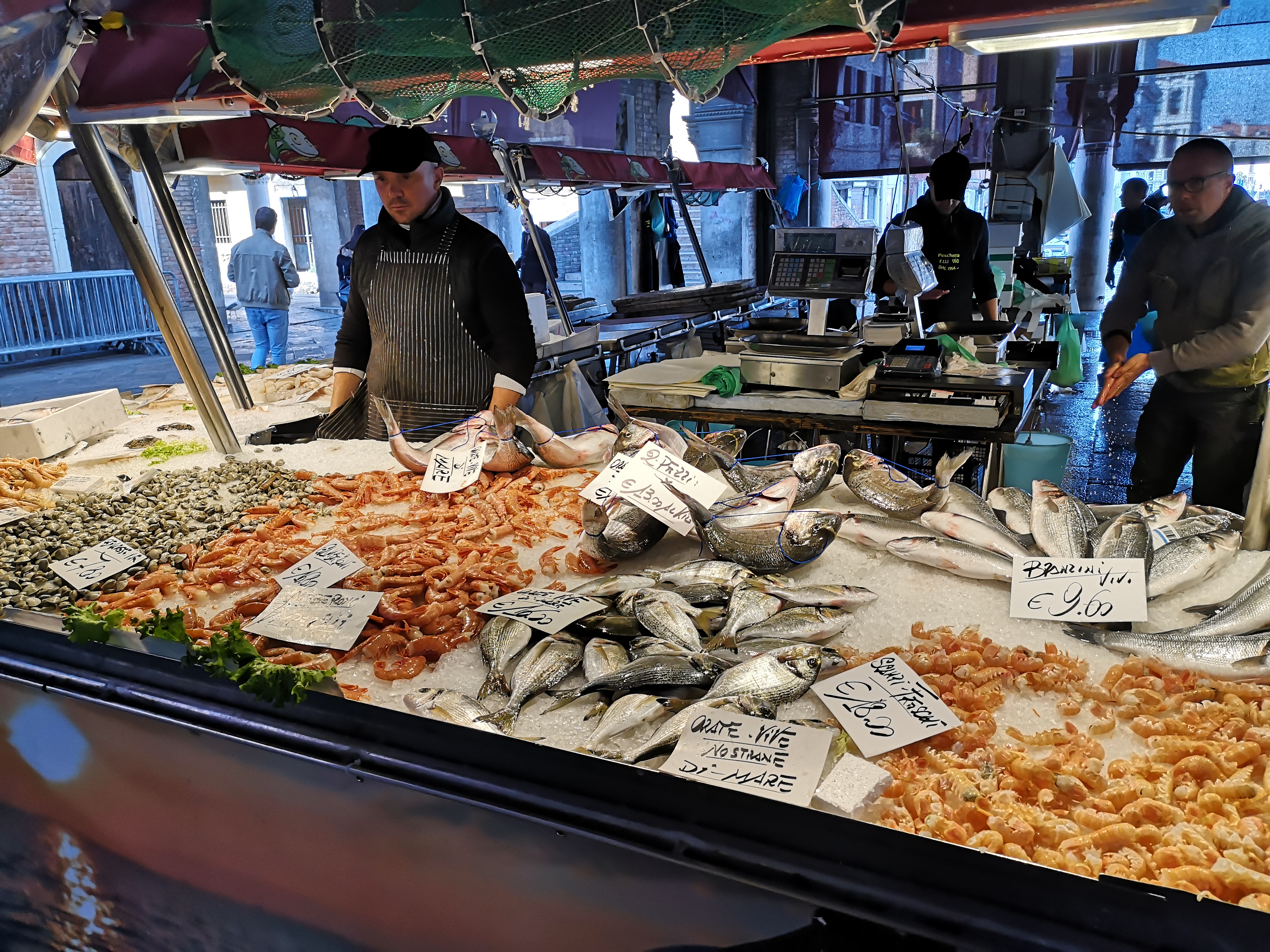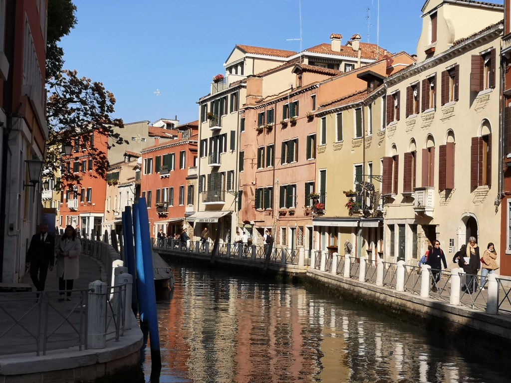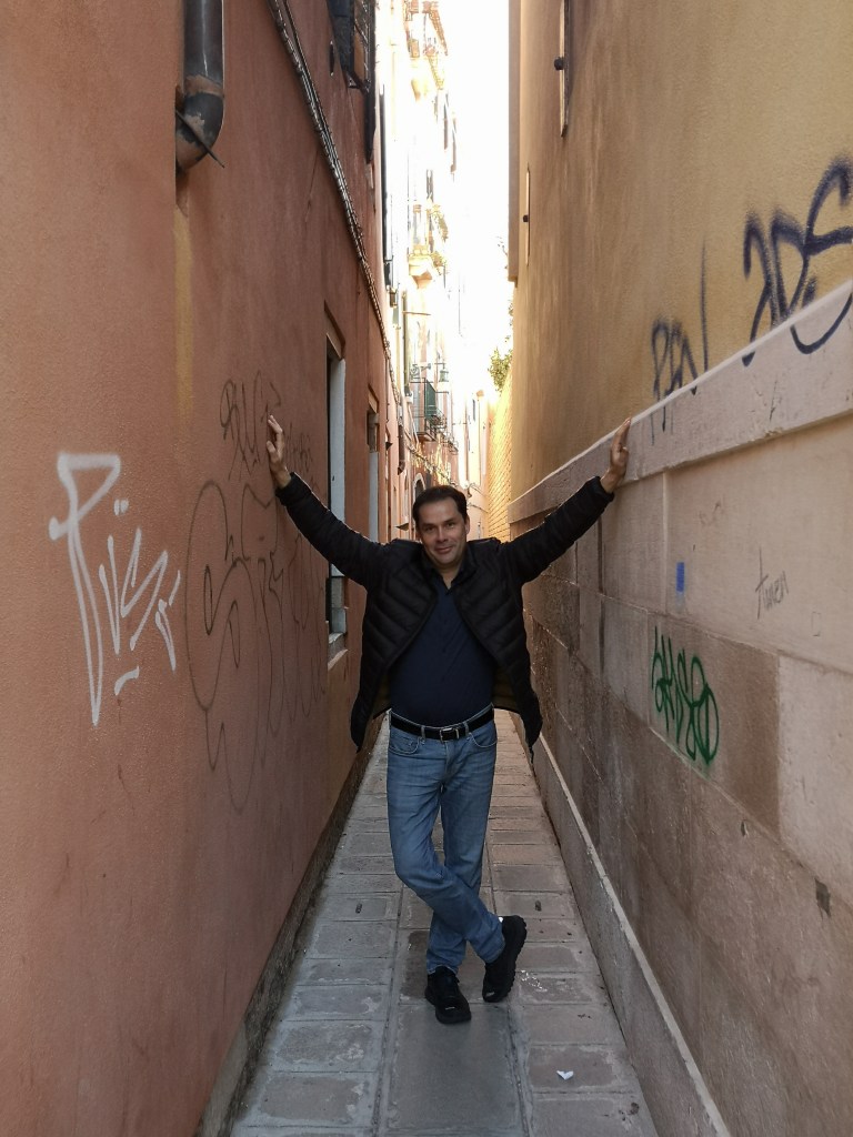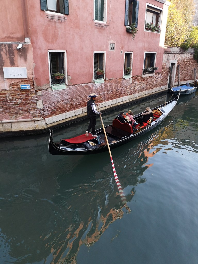 Während der Landung sah ich schon, dass da eine ganze andere Welt auf mich wartete. Es gibt keine Autostraßen, sondern Wasserstraßen, auf denen die Boote wie auf der Straße entlang bretterten. Ich war etwas früher als Alex in Venedig und konnte nach einer chaotischen Busfahrt vom Flughafen zum Hotel die Lage in Venedig checken. Und ich war angenehm überrascht: gar nicht so viele Touris. Allerdings befand ich mich noch nicht am Hotspot Markusplatz oder Rialtobrücke. Ich genoss die Gässchen und Kanäle, die alten fast verfallenen Häuser entlang der Kanäle. Es war wie im Film: Ich stehe auf einem Brückchen und der Gondoliere führt die Gondel den Kanal entlang zum Canale Grande. Dort war das Treiben schon weitaus verrückter. Der Canale Grande voller Boote und Gondeln, sogar ein Ambulanzboot mit Tatütata verschaffte sich Vorfahrt wie auf der Straße. Bis zur Rialtobrücke bin ich gekommen, suchte mir eine kleine Pizzaria, in der ich meinen ersten Espresso trank. Darauf habe ich ja so gewartet. Italienischer Espresso!!