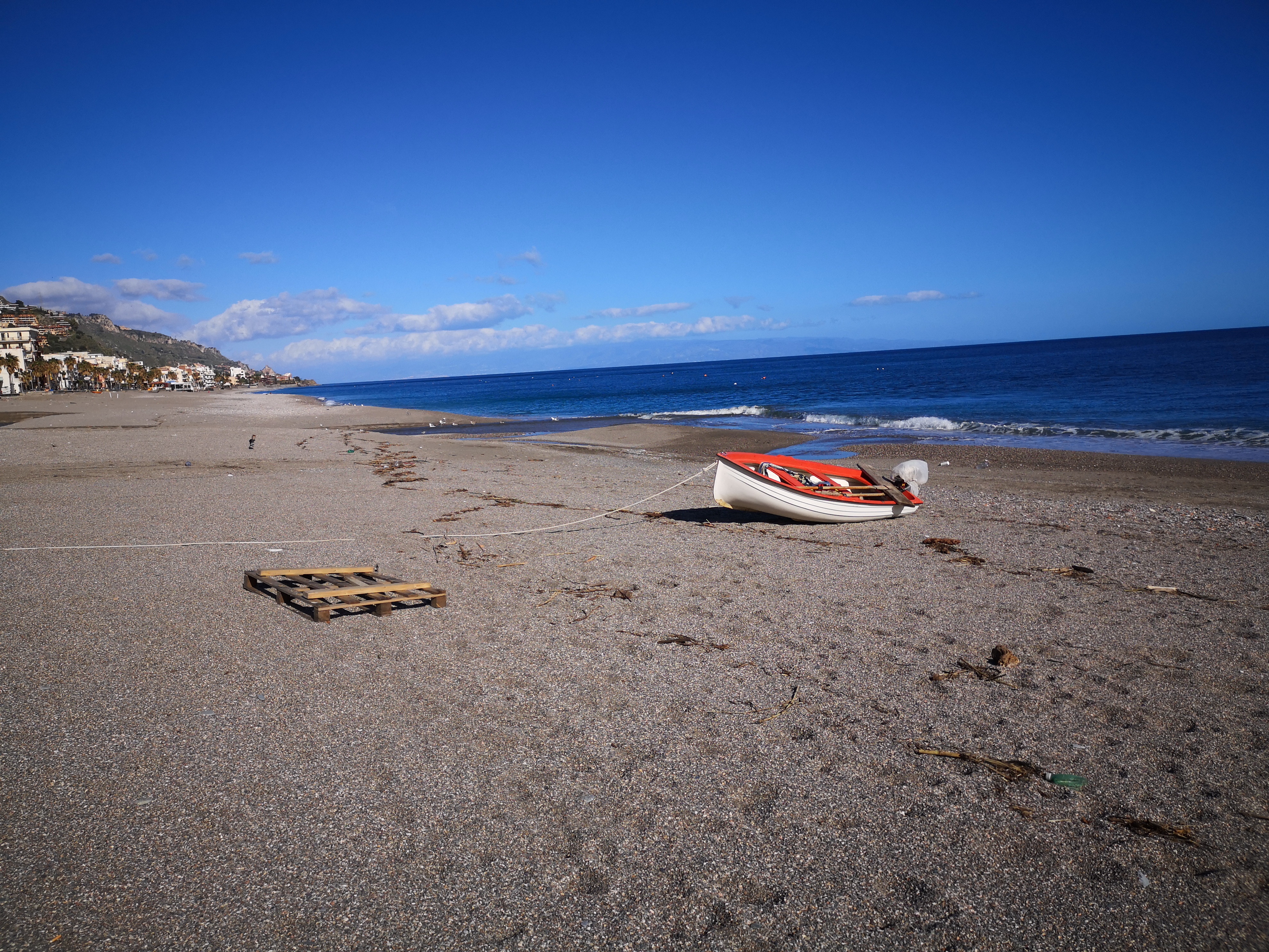 Soll ich baden gehen? Unbedingt! Denn wer weiß… Ich fuhr nach Letojanni, denn dort soll es einen berühmten Strand geben. Durch den Sturm hat er etwas gelitten und er war menschenleer. Ich zögerte etwas, aber traute mich dann doch. Und das nächste Mal unbedingt Badeschuhe mitnehmen!