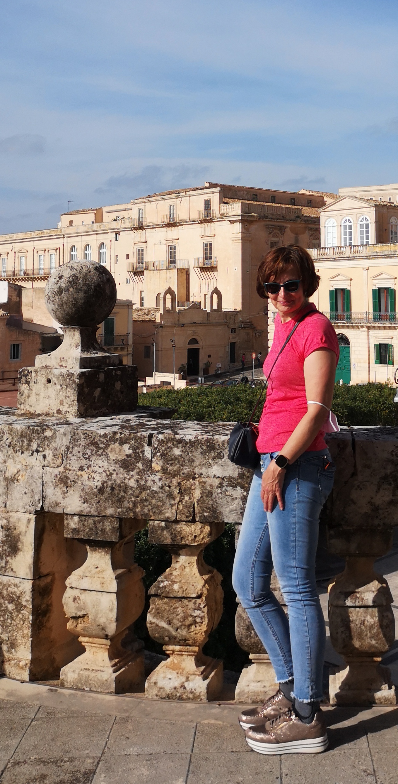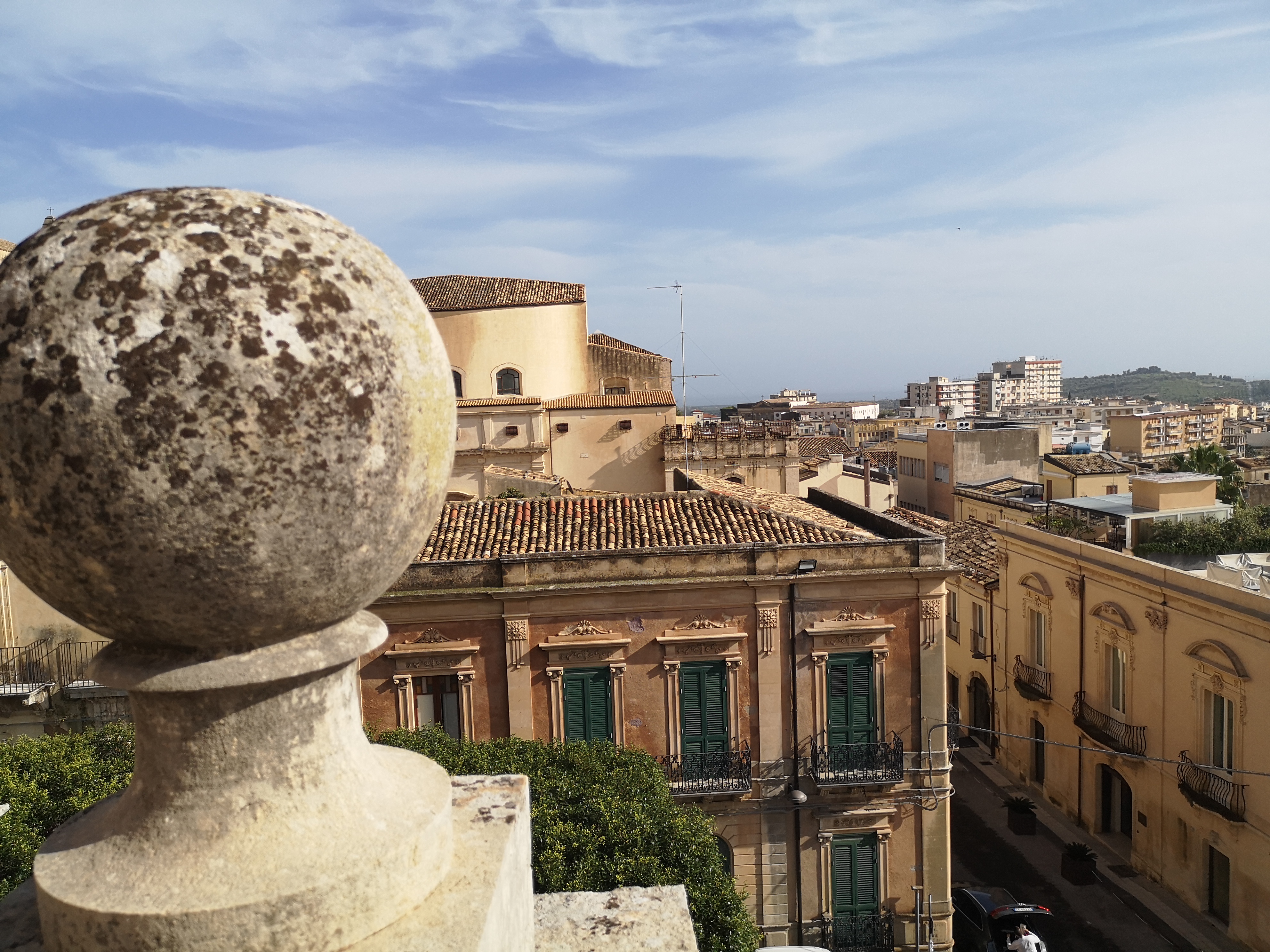 Noto – meine 2. Station der Sizilienrundreise. Ein kleines barockes Städtchen, was auf einem Hügel liegt. Schon der Anblick, wenn man von der Autobahn kommt. boah – Museum! Honiggelbe Gebäude, enge Straßen, nur Einbahnstraßen. Ich hatte so ein Glück: die Sonne schien. 26 Grad am 4. November!!! Wer glaubt mir das? Ich erkundete die Stadt, wie alle anderen auch zu Fuß: Dom, und die Gässchen, Palazzo ducale. Im Palazzo Ducale habe ich die einzige Stunde des Tages erwischt, an dem dieser für Publikum geöffnet wurde. Man konnte von dessen Terrasse einen wunderbaren Blick auf Noto genießen. Merkwürdig war nur, dass man auf dem Weg zur Terrasse durch einen Gerichtssaal geleitet wurde. Aha, hier wird also geurteilt. Ich genoss diese Möglichkeit bis zur letzten Minute. Völlig unbewusst, denn dass ich ausgerechnet in dieser besagten Stunde auf der Terrasse war, erfuhr ich erst, als ich rauswollte und die Tür schon verschlossen war. Noto ist das erste Stadtfreilichtmuseum, was ich genossen habe.