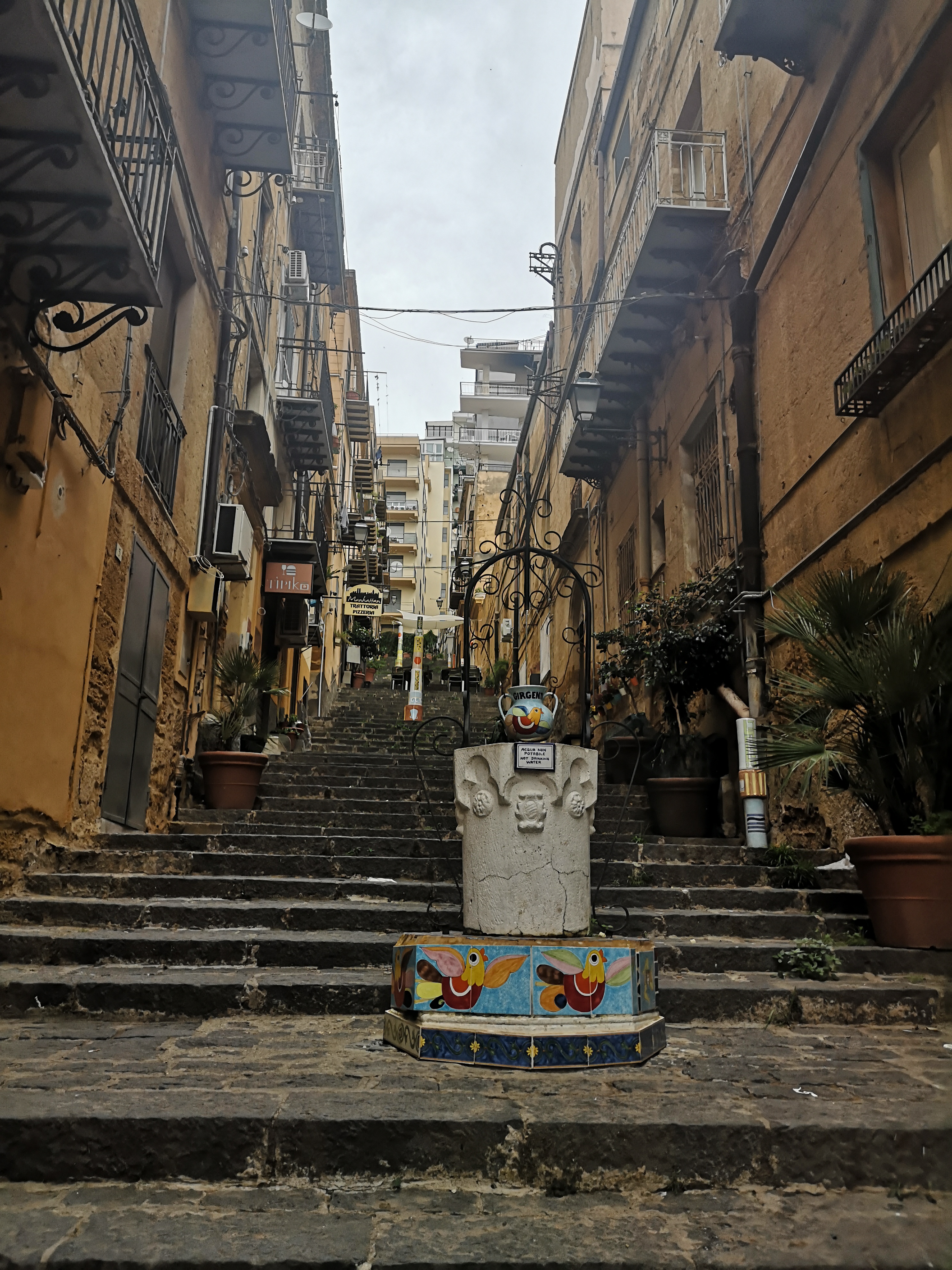 Syrakusa – Halbinsel Ortiega. Ein absolutes Muss, wenn man in Sizilien weilt. Nicht nur in Syrakusa profitierte ich davon, dass ich außerhalb der Saison reise. Es waren ganz wenige Touristen unterwegs, ein paar Russen, die vor dem Lockdowns geflüchtet sind. Dom und Castello kosten Eintritt, aber sind es unbedingt wert. Die Stadt selbst erinnerte mich an Vendig, nur ohne Kanäle und Brücken. Aber dafür mit einem Aussichtspunkt nach dem anderen entlang der Küste. Meine Füße, speziell der eine hatten zu tun. Es ging treppauf und leider dann auch wieder treppab. Konzentration war gefragt. Auch hier gibt es am Vormittag einen Fischmarkt. Also zeitig aufstehen lohnt sich.