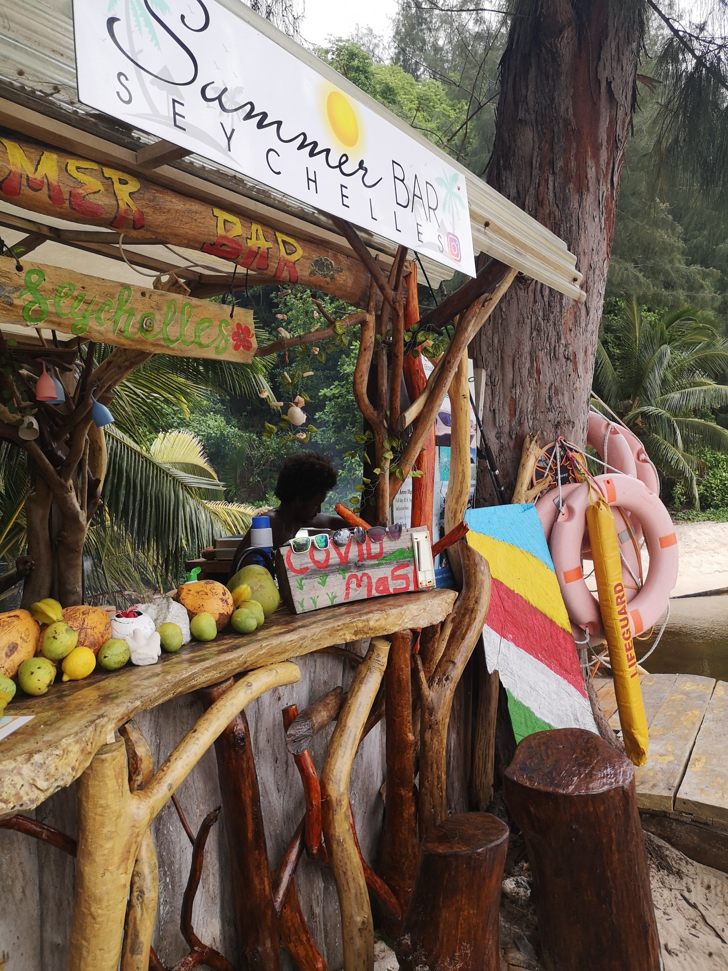 Before I describe every single beach here and bore you with it, I will concentrate mainly on the interpersonal experiences that happened to me this week. I am very happy that Lise, my landlady, introduced me to Ana. Ana from Italy / Bulgaria is also such a solo traveller and knows her way around the Seychelles very well. She doesn’t need a sat nav, she knows where which beach is. You just have to follow her and you are where you want to be. She showed me Anse Incendente – paradise, where people get married. With quite strong and high waves and a current not exactly of bad parents, you will find peace and quiet there. It is so far and deserted. Maybe there are a few honeymooners. I was impressed by a small beach bar run by three local brothers. A few years ago they put up the Seychelles flag there and declared the area as their beach bar territory. They grill fish, chicken, sausages for the beachgoers. There are some cocktails and everything is nicely arranged with hammocks for chilling and little tables and stools. The fish is caught in the pond right next to it. Caribbean music, reggae, is playing. You are in another world..