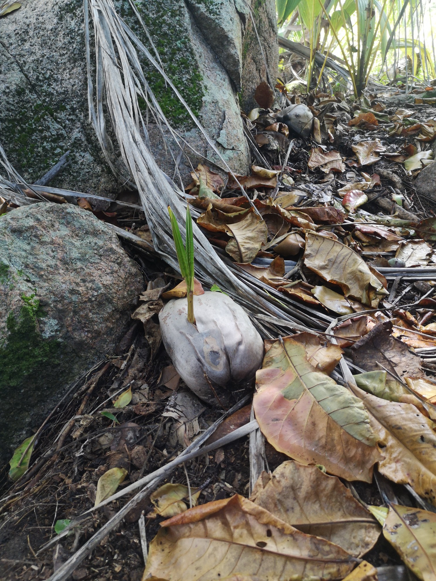 Der Strand von Grand Anse war wie alle Strände genauso leer. Wo sind denn die ganzen Touristen? In ihren Hotels? Die Sonne wurde ziemlich aggressiv. Wir suchten uns eine Bushaltestelle und warteten auf den Bus an die andere Küste. Dieser fuhr über Vallée de Mai, ein Nationalpark in der Mitte der Insel, in dem man die berühmte Seychellenpalme sehen kann. Die Fahrt mit dem Rumpelbus durch diesen Park reichte schon völlig aus, um einen Eindruck zu bekommen. Ich kam mir schon vor wie auf einer Safari. Und da mich Mika vor der Abzocke (300 SR Eintritt für nicht viel) gewarnt hat, werde ich gegebenenfalls noch einmal mit dem Bus durch dieses Gebiet fahren.