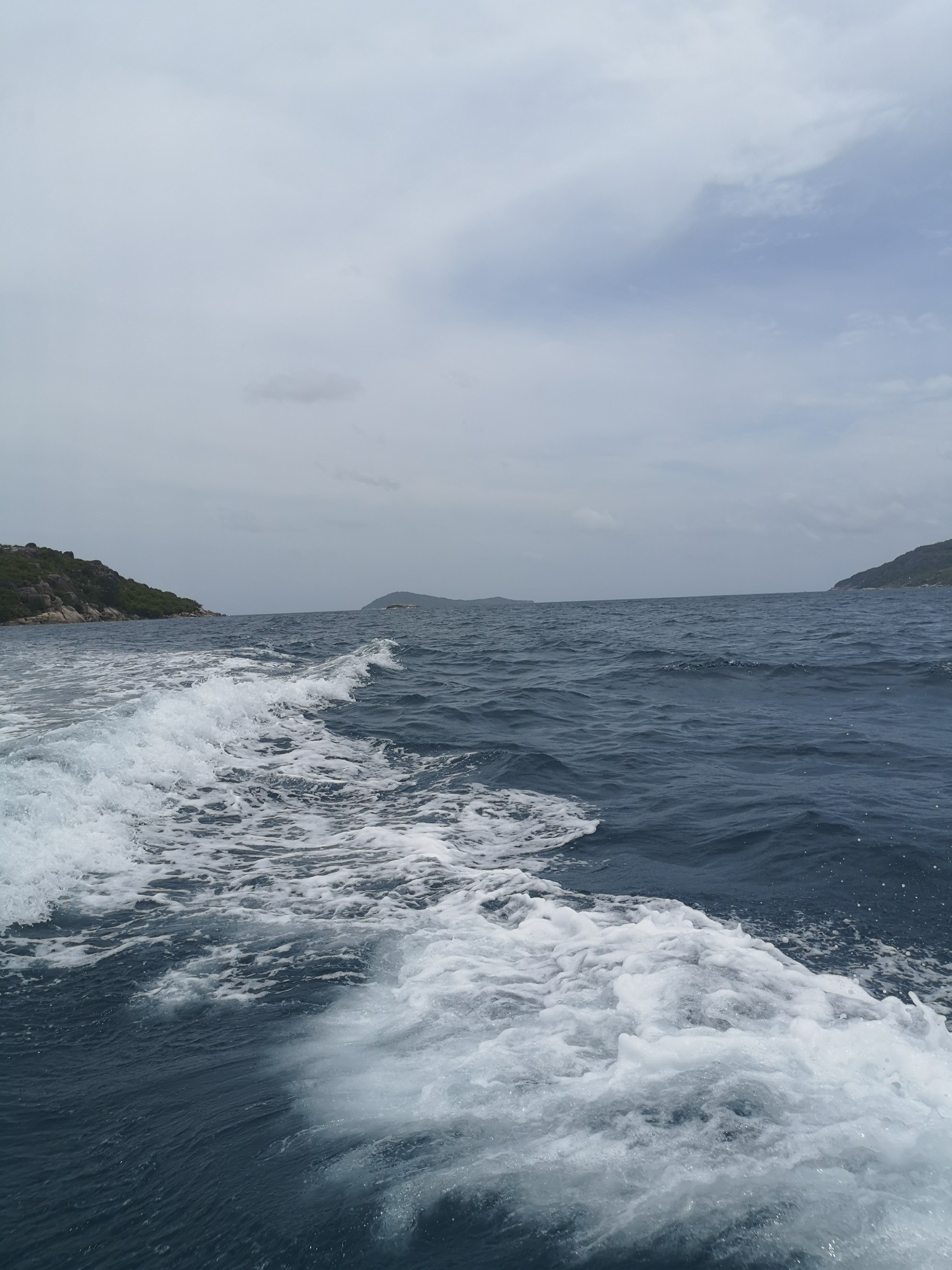 I booked Coco Island with the organisation Sagittarius, which has a small open-air office on the beach here and organises various small boat trips. I had already been to Curieuse via Sagittarius. I had to be patient for Coco and Co. The weather was very windy, the sea very choppy. And for a tour you also need a few people to make it worthwhile at all. I was lucky, on Saturday it was still quite windy, but the sun was shining and a French couple joined me. Nothing against the French, but it always takes me a little longer to warm up to them. But I got on with Sandrine straight away, we were both the same age and had the same professional experience. Her husband, whose name I unfortunately didn’t keep, was the photographer on board and reminded me a lot of my Alexander in his meticulousness. Our skipper José also spoke German. He had lived in Germany for several years and had such a longing for his fish. Besides, his wife wanted to be ‚free‘, whatever that means. I already sensed that this was going to be another little adventure.