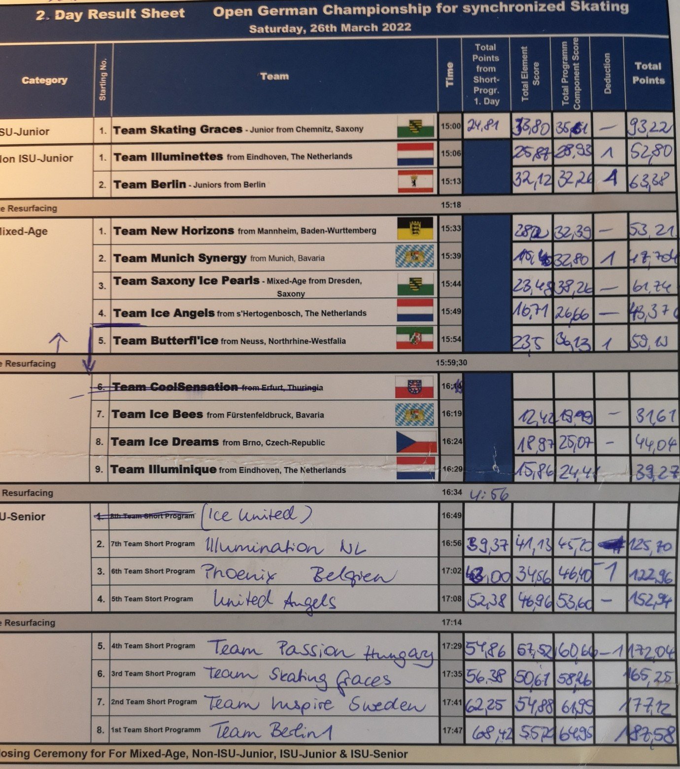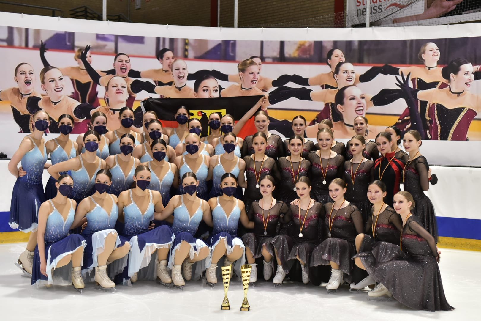 This year, the World Championships are to take place in Hamilton / Canada. Actually, I had Canada on the schedule during my sabbatical. Together with Birgit, also a skating mum whose daughter skates for the Hungarian Team Passion, we wanted to tackle this. Due to the uncertain situation, we decided against it at short notice. Instead, we went to Neuss last weekend for the Open German Championships in synchronised figure skating. We are still very much connected to the team and felt obliged to cheer them up. And the favourite team photographer also came along.