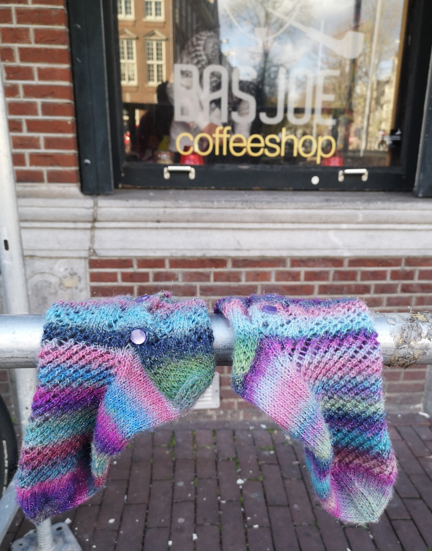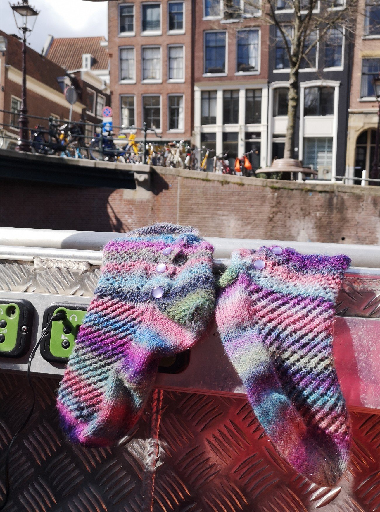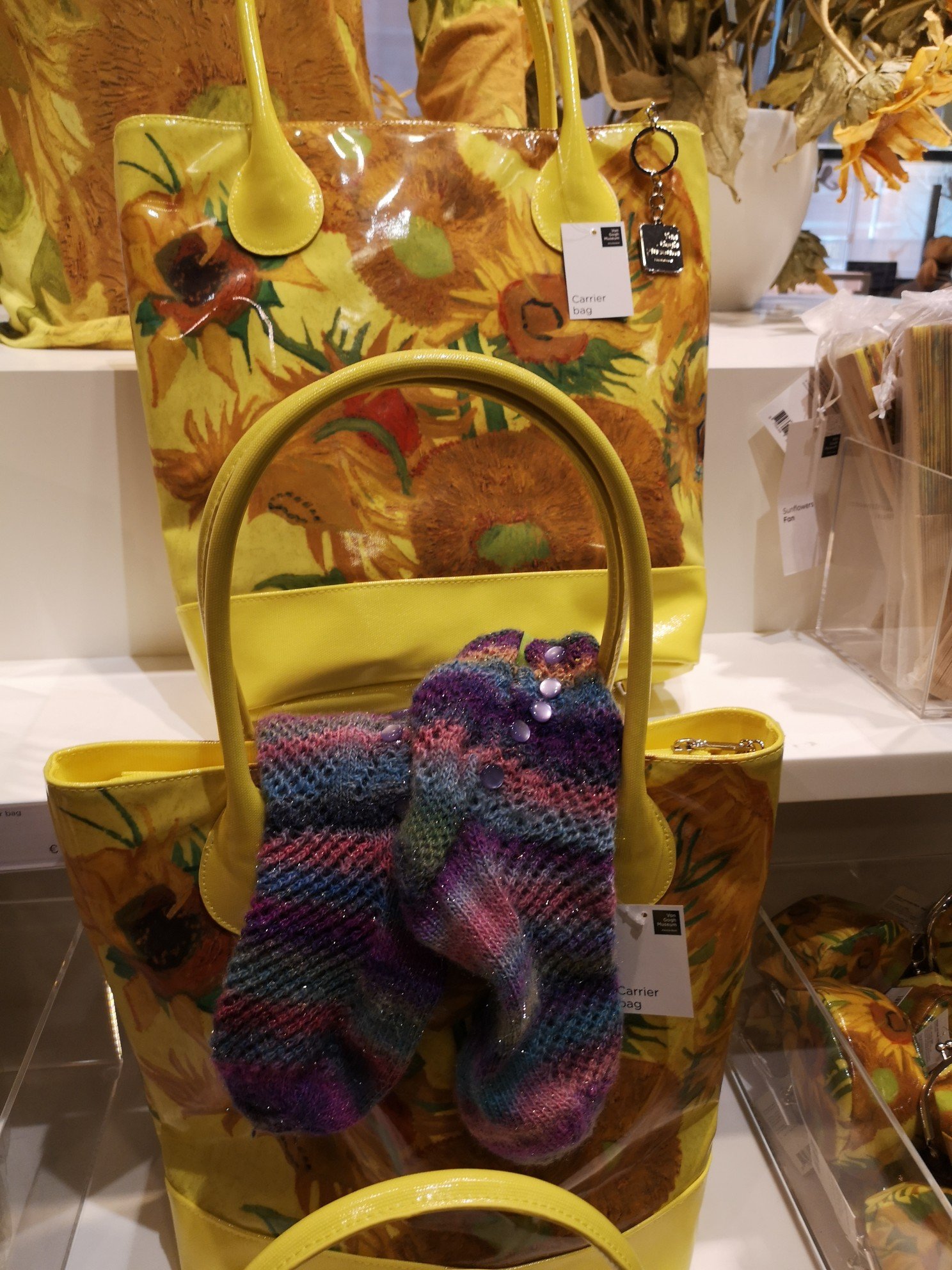 So trug ich sie mit mir herum und präsentierte sie im Vincent van Gogh Museum mit van Goghs Sonnenblumen, im Tulpenbeet, auf dem Fahrrad … Und sie erfüllten noch einen anderen guten Zweck. Handschuhe hatte ich vergessen. Man kann #sylkesox auch als Glox tragen (gloves + sox). Dieses Copyright geht an Ashok.