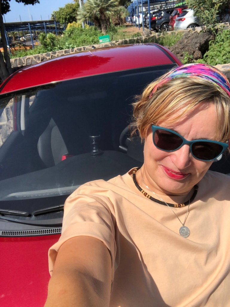 Diesmal keine Flughafenphobie. Impfausweis und Covid-Test wurden nicht eingefordert, auch habe ich die PLF nicht gebraucht. Keiner fragt danach. Nur in Spanien sieht man das Tragen einer Maske noch als Pflicht, während wir uns langsam wieder ans eigentliche Leben ohne Maske gewöhnen müssen. Die Koffer zogen schon ihre Runden auf dem Gepäckband. Nächste Station: Autovermietung. Ich bekam einen knallroten Hundayi. Wow, ein rotes Auto. Das passt zu mir mit meinem roten Schal, roter Handtasche und knallroten Lippenstift.