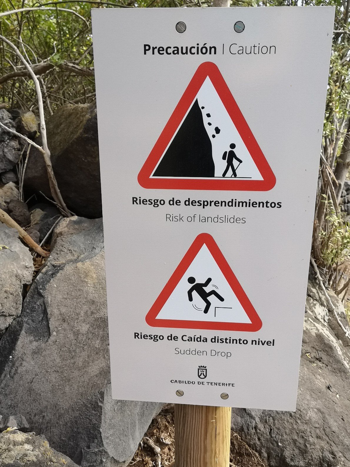 Die erste Etappe – den Barranco hinauf zum Bergdorf La Vera ist ziemlich steil. Der Pfad schmal und am Abgrund entlang. An jeder Ecke steht ein Warnschild: Absturzgefahr, Rutschgefahr, Steinschlag. Und ich laufe da ganz allein lang!!! Wer weiß eigentlich, dass ich hier bin? Wie verrückt bin ich überhaupt noch? Blauäugig und nun auch noch blond!!! Die Sonne schien, ich glaube zum ersten Mal seit ich hier bin. Nächstes Problem: Ich habe mich nicht eingecremt. Zum Glück dauerte dieses Intermezzo nicht lange und die Wolken zogen wieder auf. Trotz der ‚Unanehmlichkeiten‘ und Gefahren, denen ich mich aussetzte, genoss ich den Ausblick in die Schlucht des Barrnco de Ruiz und auf die Küste. Nach ca. 1 Stunde erreichte ich das Bergdorf La Vera, von dem man einen wunderschönen Blick auf Teide, Barranco und Küste haben soll. Barranco und Küste ja, Teide nein – ein paar Schneefelder konnte man durch aufgerissene Wolken erkennen.