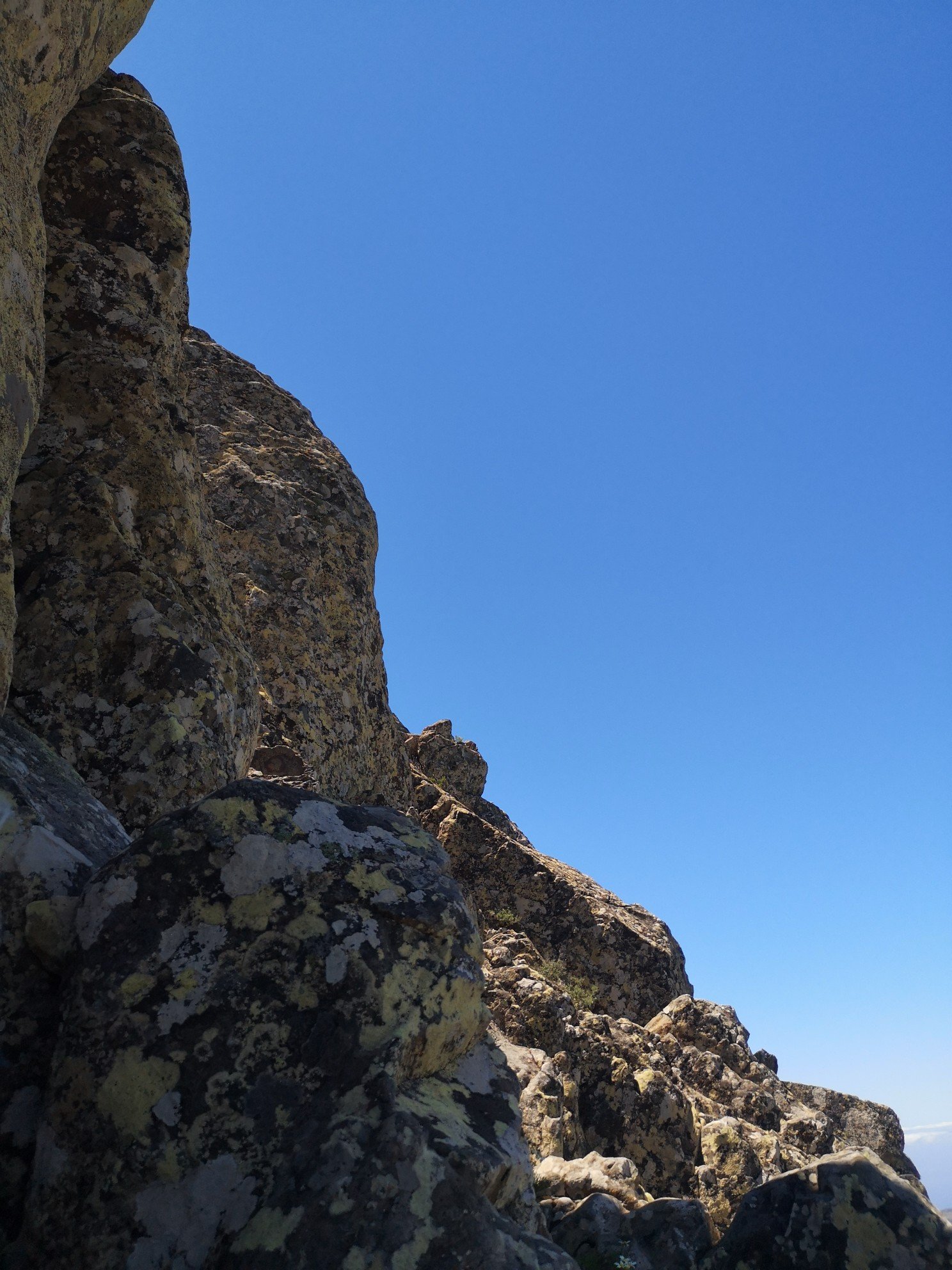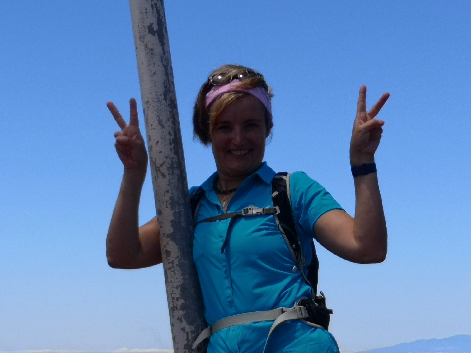 Die Entscheidung, den Tafelberg hinaufzusteigen, überließ Carlo uns selbst. Er gab zu bedenken, dass dieser nicht so einfach ist. Im Rother Wanderführer wird dieser sogar als schwarz eingestuft. Da ich ja in Höhe überhaupt keine Angst habe, bei mir eher das Gegenteil der Fall ist und ich manchmal übermütig werde, wenn das Adrenalin durch die Adern fließt, überlegte ich nicht lange und war im nächsten Moment auch schon oben, stand am Gipfelkreuz und winkte der Welt zu. Juchuu!!!