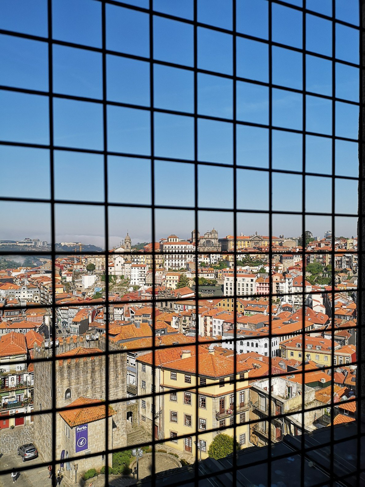 Well, while I’m at it, I might as well go up to the highest tower – the Torre des Clérigos (bell tower). Thought. Done. Back – ouch. Supposedly you can see all the way to America from up there. Yes, it must have been a bit foggy today.