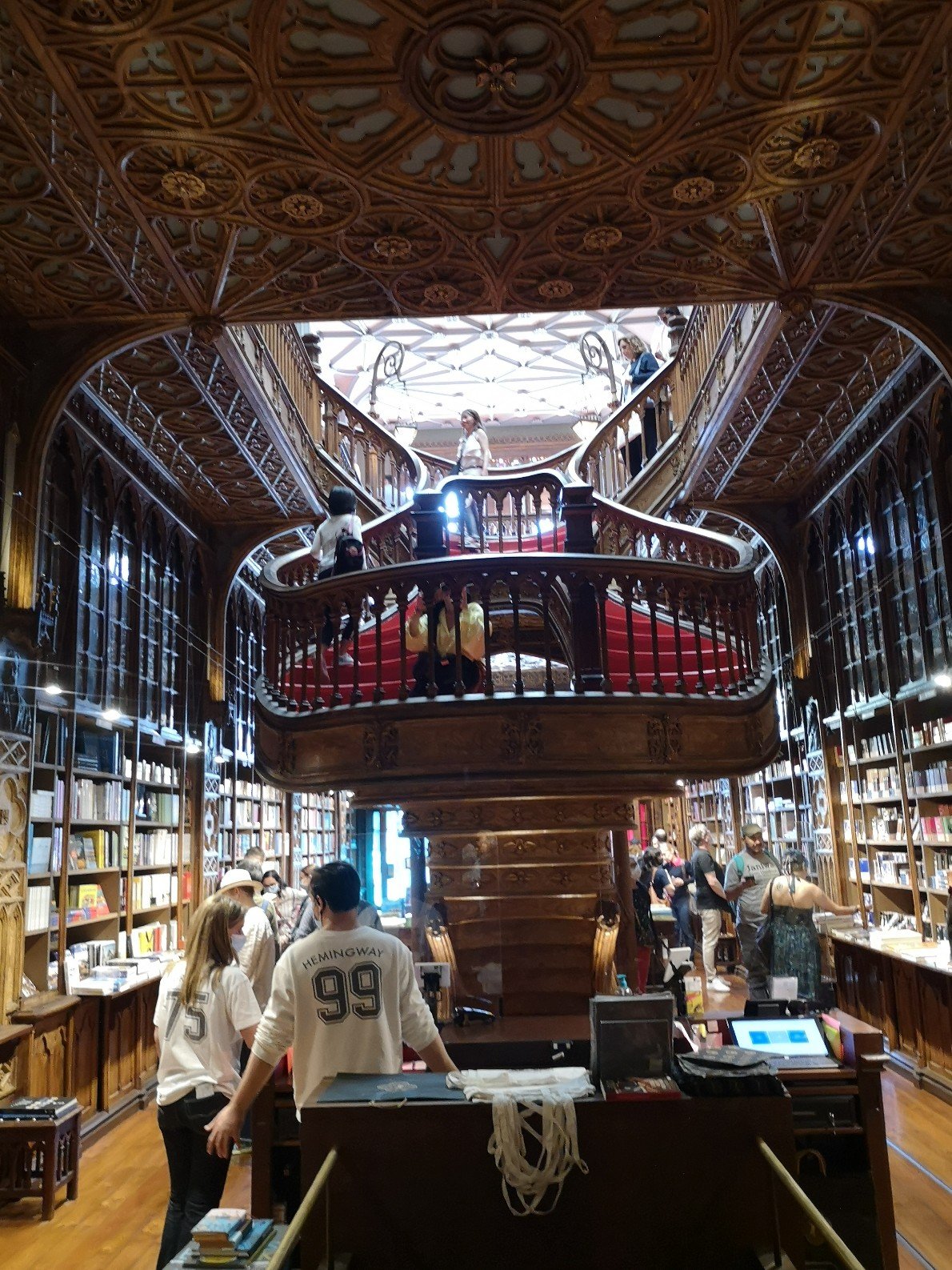 And it still wasn’t. I read in the guidebook that J.K. Rowling lived in Porto for a while, and that she was inspired by a staircase in the Lollo bookshop. Yes, the Harry Potter staircase. I have to see it too. Maybe it will inspire me too. But what a long queue. Entrance only with voucher, which you can buy online for 5 euros. And if you buy something in the bookshop, you can redeem it. What a business idea!!! I couldn’t get it online, bought a voucher for 6 euros and was on Harry Potter’s staircase. The library was full of people. It was difficult to enjoy the flair of this unique shop.