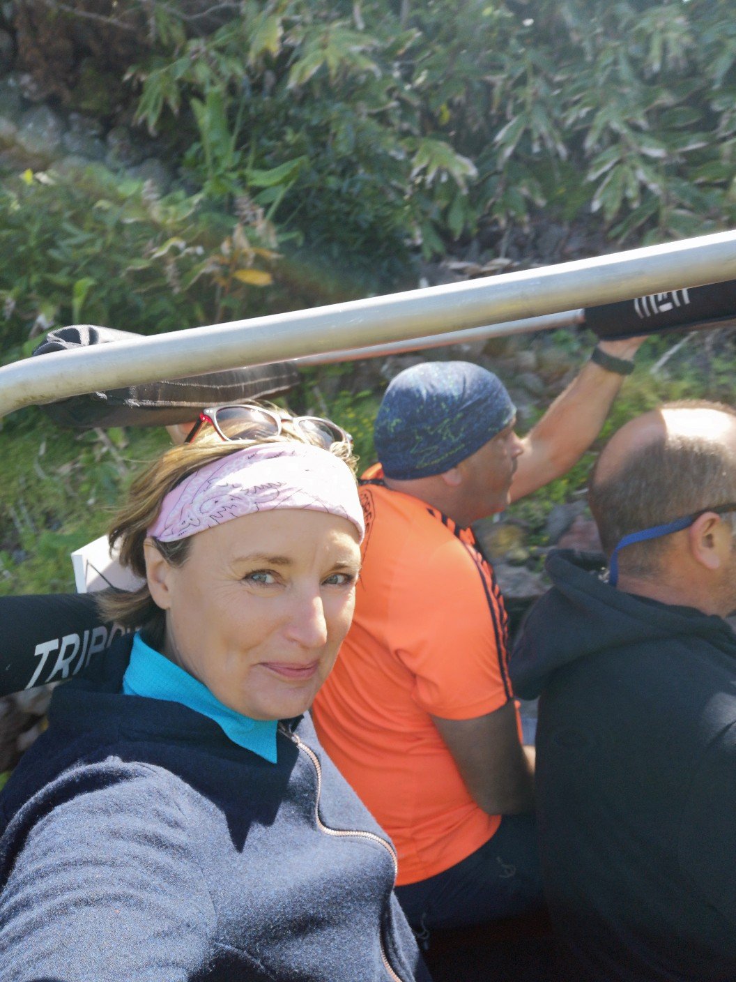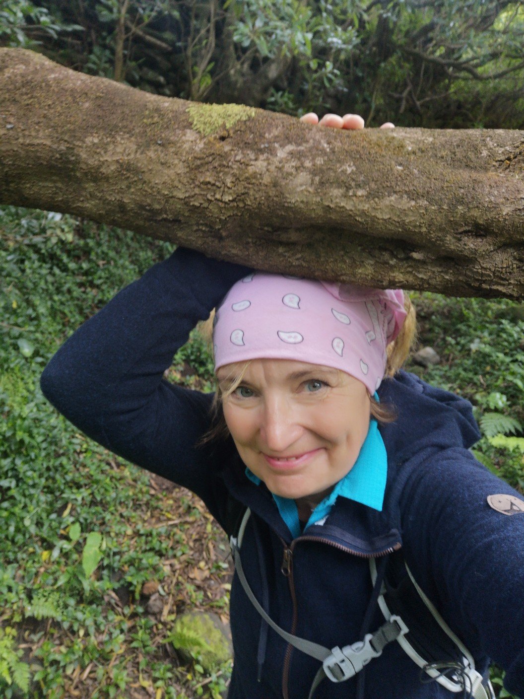 Es wurde sonnig. Die Wolke zog weg und wir hatten einen irren Ausblick auf die Fajas. Dominante Farben: Grün, Hellgrün, Dunkelgrün, Grün, Blau. Wieder ein paar mehr Fotos für den Wandkalender 2023. Meine Güte, wird das schwer, die besten 12 auszusuchen! Vielleicht sollte ich einen Kalender für jeden Tag, und am besten unterteilt in Vormittag, Nachmittag, Abend gestalten. Dann werde ich alle tausend Fotos unterkriegen. Für die meist begangene Route schien es ziemlich einsam hier. Wir trafen auf ein paar Wildziegen und zwei Esel. Luis erzählte mir, dass vor Covid mindestens 1000 Besucher pro Tag zur Faja gelaufen sind. An einem Wasserfall wurde Rast eingelegt. Ich habe mich ein bisschen geärgert, dass ich meine Badesachen nicht mitgenommen habe. Ich wäre gern in den Pool hineingesprungen.