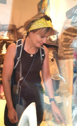 The centre of marble art is in Pyrgos. On our way there we visited two smaller villages: Kadiani and Isternia. Kadiani lies in the lee, above the coast. Shady because of the many fig trees and winding alleys. You have to find your way, like in a labyrinth. And you find it. Small taverns in the alleys, small boutiques selling typical local goods. I couldn’t get past the scarves. I had to take one with me. Maybe there will be more. I discovered that there is even a hiking route that connects the marble villages. Unfortunately only in one direction. And I had some concerns about the wind. On the open route, you’re bound to get blown over. And then I discovered another special feature that I had not been aware of for the Cyclades before. There are vipers here. A large self-painted sign warned hikers who wanted to continue on the path to the next village.