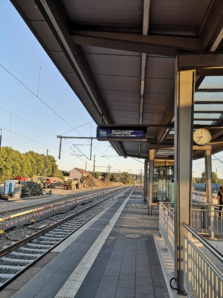 And now it’s onwards. With the €9 ticket to Friedberg. I was to be picked up there by my relatives and looked for a connection with S-Bahn, bus and S-Bahn. Arrival approx. 6.30 pm. If everything works out. Yes, if everything works out. I wouldn’t be writing this blog if everything had gone round and boring. It all started with a terribly exhausting suitcase aisle. There are no escalators or lifts leading to the S-Bahn tracks at Frankfurt Airport station. Very disabled-friendly. And when you accidentally walk down the wrong track and have to walk back up again with a suitcase weighing almost 20 kilos, you know what you’ve done. I’m about to walk on a stick. According to the DB app, I was supposed to get off at Konstablerwache, where the rail replacement service to Bad Vilbel left. Just as I found it, my suitcase piled up the stairs, this stupid bus passes me a minute too early. That’s not true at all. I tried the app again and it kept spitting out the same thing: Konstablerwache – Bad Vilbel. The next one will be here in 30 minutes.
