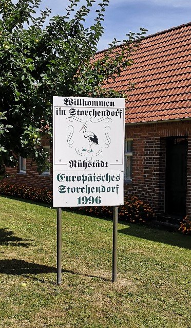 Wieder an der Elbe angekommen, durchquerte ich das Dörfchen Rühstädt. Storchendorf im Jahre 1996. Und die Störche sind auch 2022 zahlreich erschienen. Es gibt allein in diesem Dorf über 20 Nester. In diesem Jahr zählt man 86 Junge. Also die menschliche Geburtenrate in Deutschland steigt nicht an, dafür die der Störche. Wahrscheinlich gibt es noch zu viele Menschen, die an den Klapperstorch glauben. Haha. Das ganze Dorf hat sich dem Storch verschrieben. Ein Besucherzentrum, ein Storchenhaus (ohne Hebamme, denn so heißen die Geburtshäuser in Berlin). Kein Gasthaus, was erfrischende Getränke anbietet. Das einzige Café hatte Ruhetag und das Hotel scheint Corona nicht überlebt zu haben. So breitete ich meine Yogamatte auf einem Fahrradrastplatz aus und machte mich an meine Vorräte, die ich während der Fahrt gesammelt habe: Brombeeren, Kornäpfel … Noch 2 Wochen später dann kann man die vielen Zwetschgen und Birnen ernten.