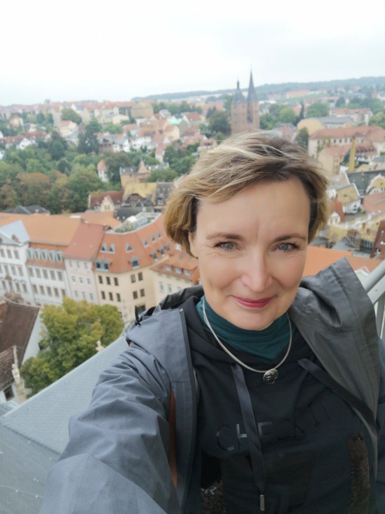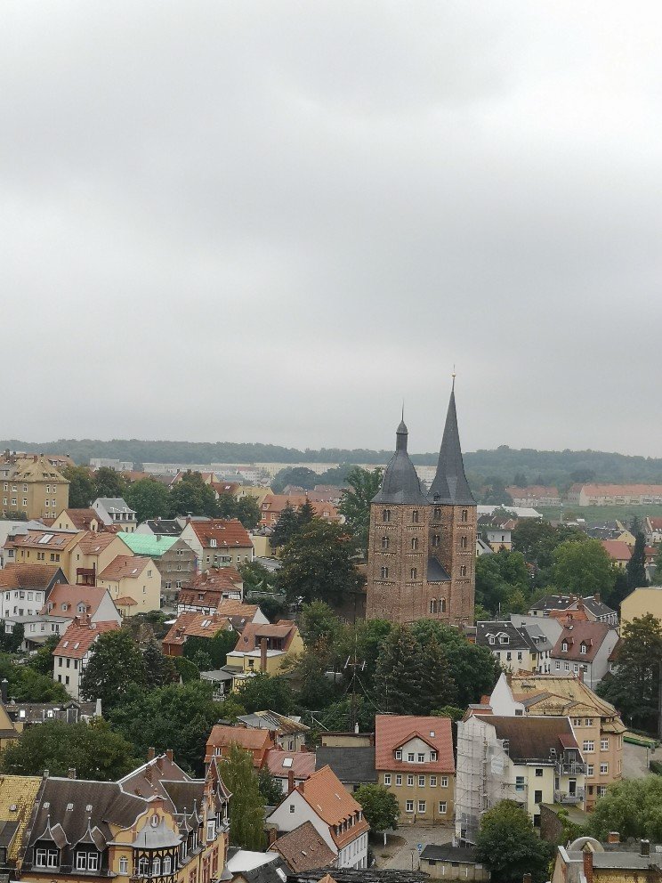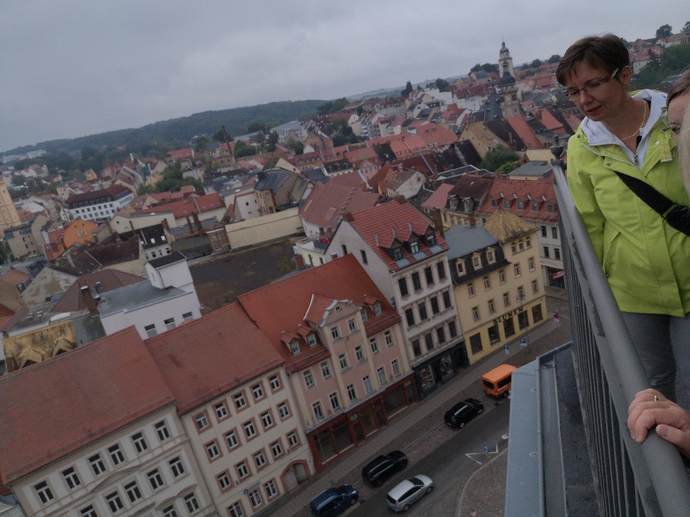 Sunday morning was also rainy, cloudy. Since we always meet on the second weekend in September, we can always take advantage of the Open Monument Day on Sunday. And Altenburg is full of them. Except that my train left for Leipzig at 12 o’clock and we always take a long time for breakfast. I was able to take in a church tower complete with turret flat. Up the steep stairs, around it once, down the steep stairs slowly again. Then I had to go.