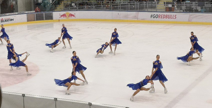 I had already bought the ticket online and in no time I was sitting in the Berlin / Germany fan block, right in the middle like before. Unfortunately, I missed the junior competitions and a few seniors. But the first team I saw on the ice, I recognised immediately by their charisma, slow and careful movements. Just don’t do anything wrong! Don’t take any risks! – Yes, Hot Shivers Seniors from Italy.