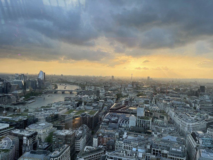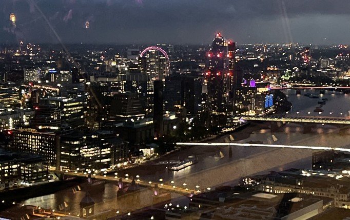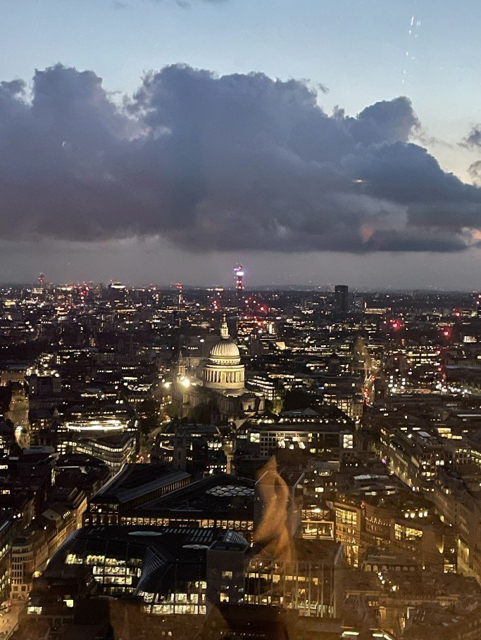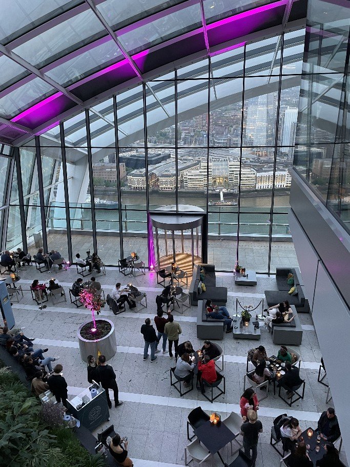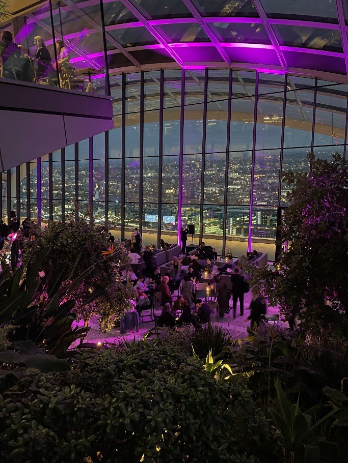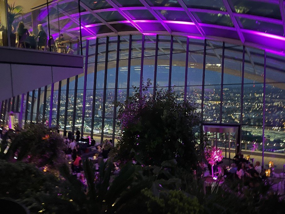 8pm – Sky Garden. A two-hour stay with live music and a glass of bubbly for a fair price. Sunset and London at night. I come out of the lift and was suddenly wide awake. Woah, wow, wow. Heaven – where am I? A huge garden terrace stretching across the whole skyscraper, full of exotic plants, with bars and restaurants to linger in. The sun was already very low. London was ‚on fire‘. We were both so flashed. And there it was again, the feeling. Or rather, where should I put my feelings? It was simply fantastic. The view stretched all the way to Wembley, Olympic Stadium. Below us Tower Bridge, the Tower, in front of us St Paul’s, the London Eye in the background, the Thames meandering through the city, the skyscrapers of the City. So far, I have only been able to experience something like this in New York on the Empire State Building. We did several laps, sipped our champagne, photographed the city through all phases of sunset. What a panorama. Slowly the lights came on and everything shone. The band played RnB music, Ed Sheeran, Whitney Houston. A bit of house in between. I would have loved to stay the night and join the yoga session on the terrace the next morning. What a crazy experience!!!