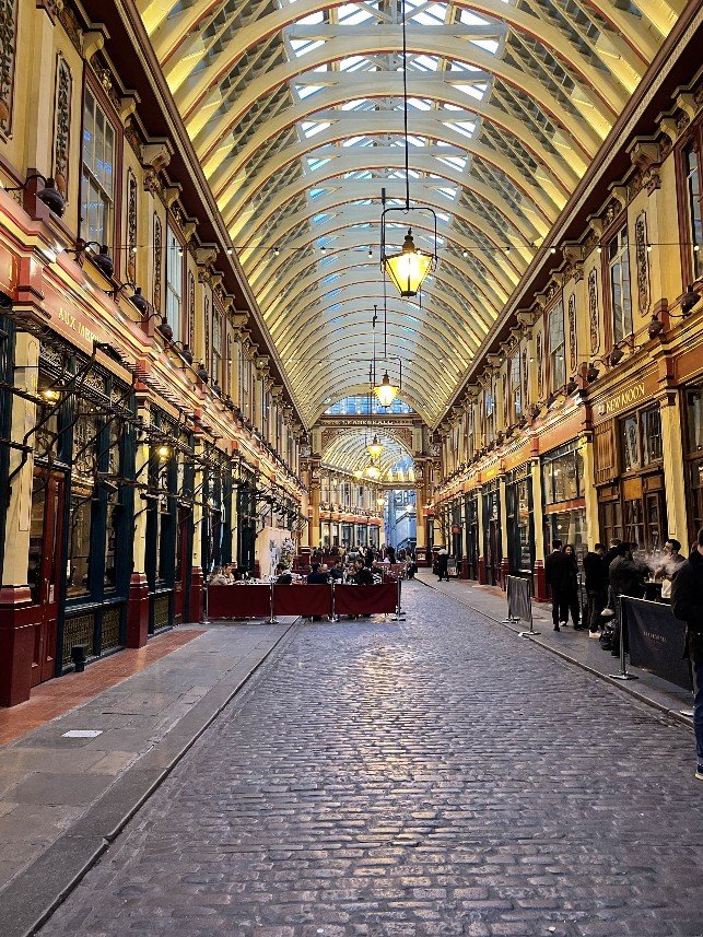 Our feet were burning, we looked for a café. However, it closed at 7 and we were back on the street. We still had an hour before the lift ride to the Sky Garden. We wandered through the city, found a passage that had either been restored or trimmed to look old. A kind of pub mile. And all the pubs were full of people.