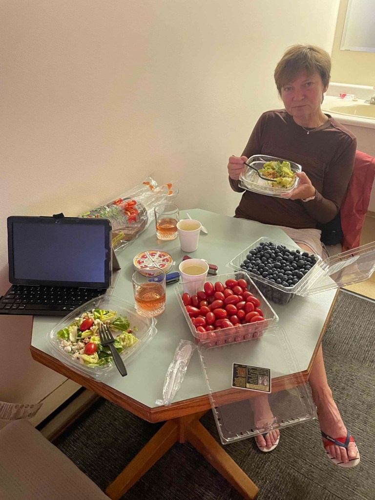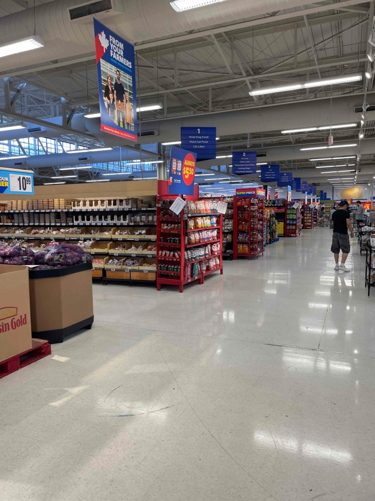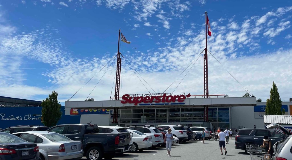 Der erst beste Supermarkt wurde angesteuert. Die Einkaufswagen sind hier kleine Panzer. Man braucht einen besonderen Führerschein, um die effektiv und ohne Unfall durch die Reihen zu navigieren. Wir stellten ihn wieder weg und nahmen zwei Körbe. Hätten wir doch den Panzer genommen… Es gibt wie in den USA nur Großpackungen: gleich 3 Gurken eingeschweißt, 10 Paprika statt 3, Blaubeeren XXL, Brot und und und für eine Großfamilie. Selbst die belegten Sandwiches lagen als ganze Brote im Kühlfach. Und jetzt kommt’s: Bei dem Versuch, eine Großpackung Wasser (9 Flaschen) zu kaufen, wurden die uns wieder weggenommen. Jeder bitte nur 2 Flaschen Wasser! Wer soll das verstehen? Dann gehen wir halt nochmal in den Supermarkt und holen im zweiten Anlauf noch einmal 4 Flaschen.