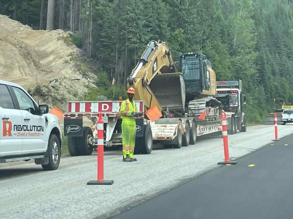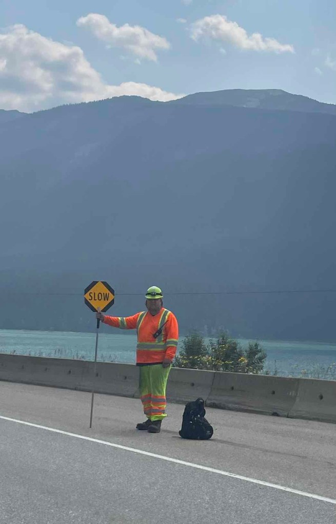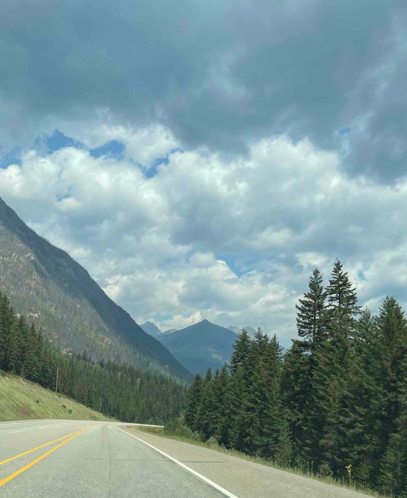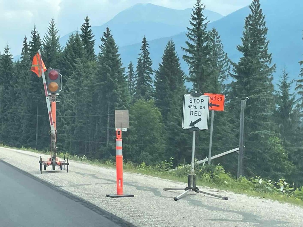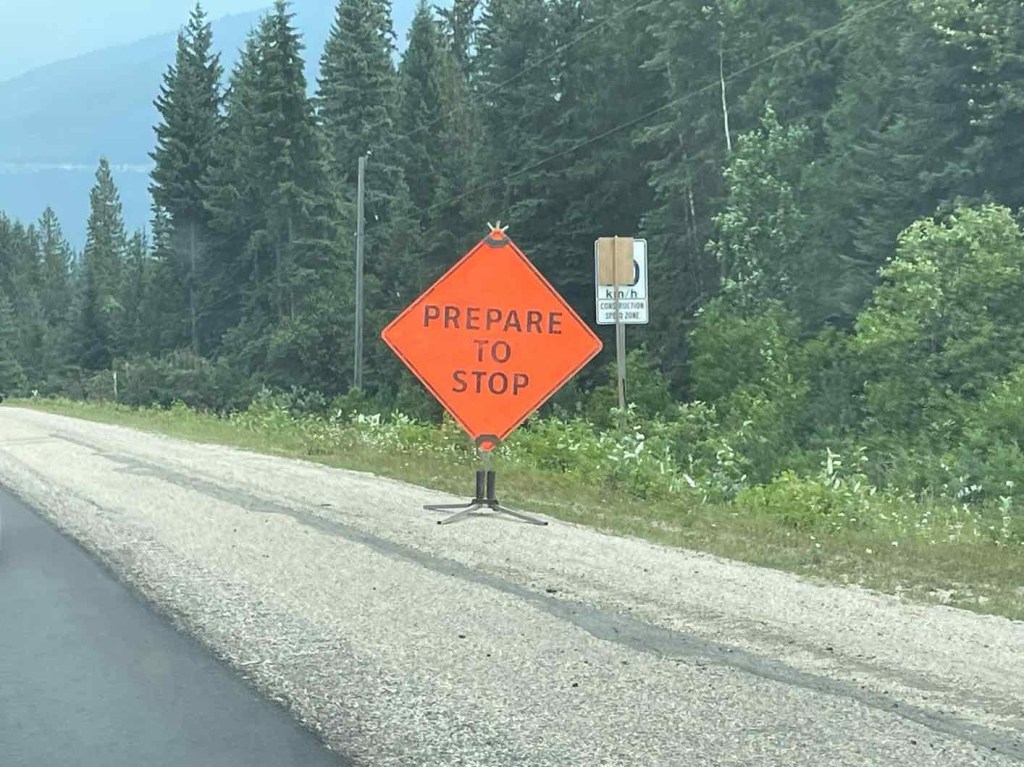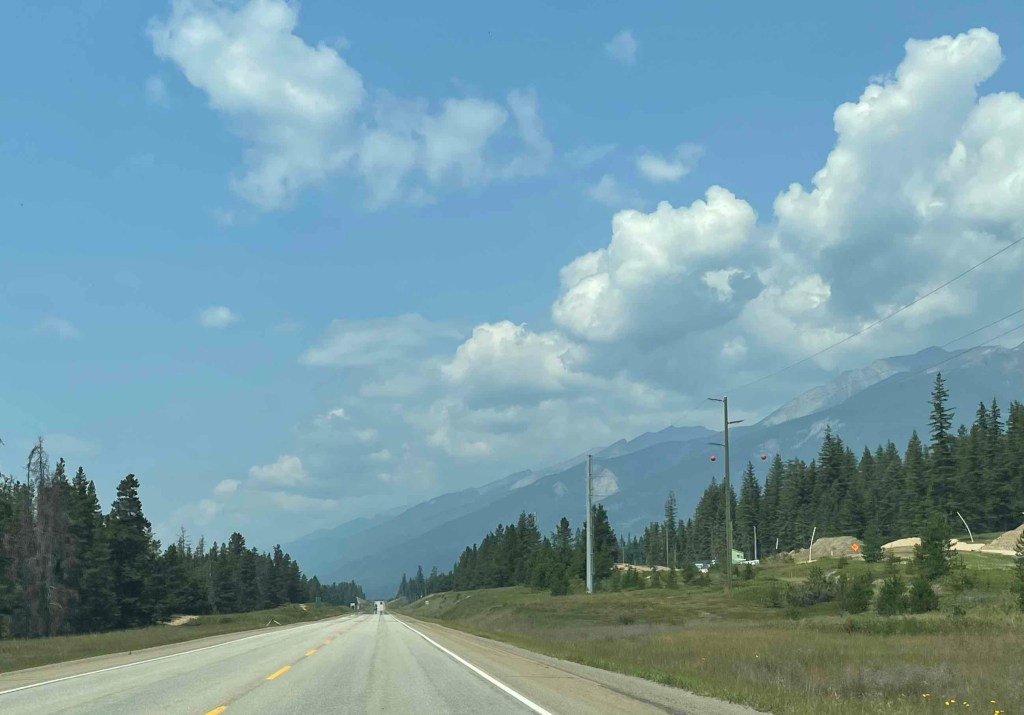 Außerdem suchten wir zur Sicherheit noch einen Supermarkt in Clearwater auf, tankten und los ging es durch das tiefste Kanada. Clearwater schien tatsächlich der fast letzte Ort vor dem Jasper Nationalpark zu sein. So hatte ich das Gefühl. Statt Ortschaften am Rande des Highways zeugen nur Baustellen am Highway von der Existenz von Leben. Und das so aller 5 km. Manchmal stand ein Bauarbeitermännchen mit einem Slow / Stop – Schild in der Hand am Rand der Fahrbahn und wir mussten kurz warten. Der Verkehr lief aber meist zügig, flüssig. Ich frage mich nur, ob die Bauarbeiter auf den Baustellen wohnen, denn weit und breit gibt es kein Haus. Nur tiefer dunkler Wald, wilde Flüsse und Berge, Berge, Berge – so weit das Auge reicht. Mittendrin der Highway, auf dem genauso viele Trucks wie Autos fahren, mit der gleichen Geschwindigkeit und zum Teil schneller. Mir wurde anders, als uns diese überholten. Riesige Camper, fast auch Trucks hatten noch ein Auto hinten im Schlepptau. Und wenn ich Auto sage, meine ich Pickup Truck. Was sind das für Dimensionen?!