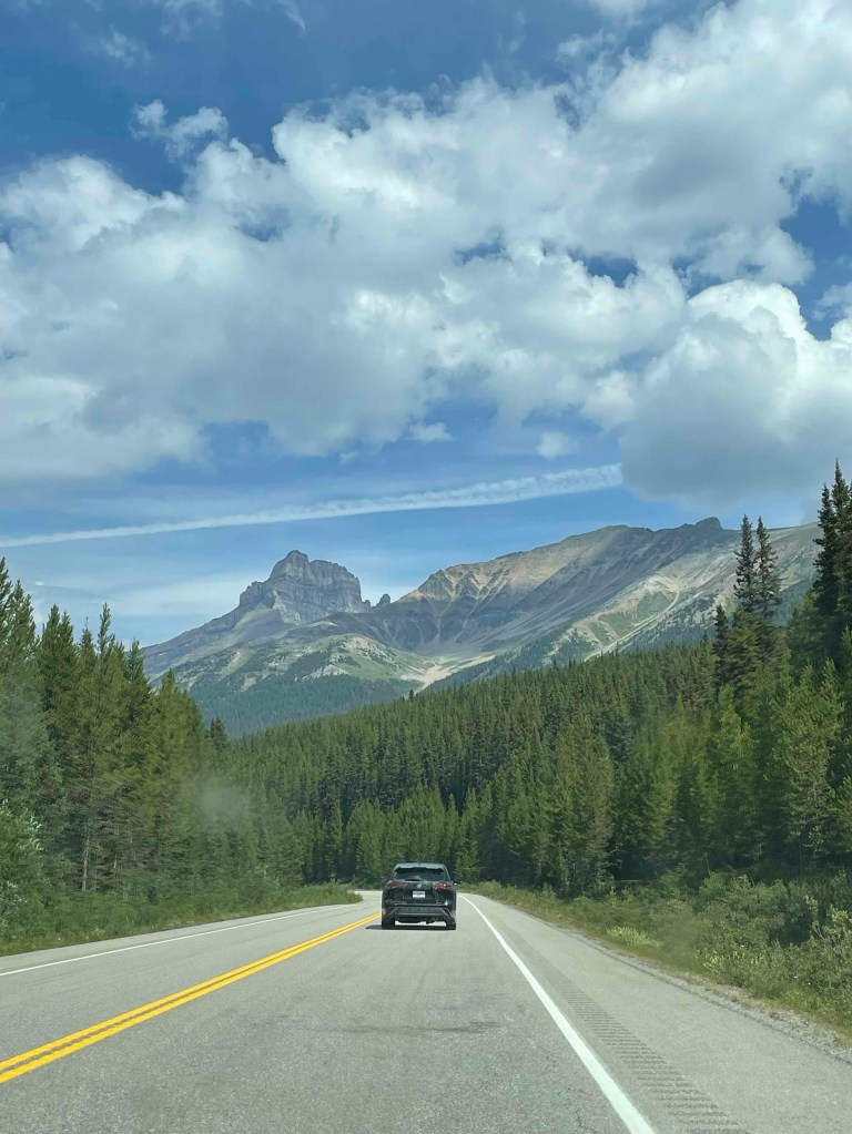 Today we had a lake day, so to speak. Because it’s a holiday, we slept in. Quite late, in fact. We had a hearty breakfast, packed our bathing suits and drove to Peyto, the first lake. As soon as we left the driveway of our bungalow complex, we stood in front of a moose buck, comfortably chewing its lunch at the side of the road. What a magnificent animal! And that was not all. When cars suddenly pull up slowly to the side of the road and stop, you know there’s something lurking in the bush. And sure enough, there was a brown bear playing. Just like that, by the road. My first bear. Unfortunately, we had passed it so quickly. We couldn’t just turn around on the highway. That’s why there are no photos of the bear. But you can believe me, I don’t want to make a fool of you.