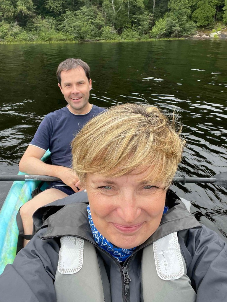 Said. Done. With the national park pass, which was already a great benefit to us, we drove deep into the Parc nationale de la Mauricie. Our destination was Lac Wapizagonke. According to the other guests at the hostel, there is a canoe rental station there. Even though canoes are more commonly associated with Canada, we decided to go kayaking. Renting a canoe was a bit complicated. You first had to register and solve a quiz that asked about safety measures, such as: How should the boat be positioned if the wind is very strong? Or what do you have to do if a thunderstorm is coming? Stand under the next best free-standing tree, of course. We got a kayak anyway, chose by colour, nice and colourful, not by function. Maybe that was a mistake. I sat down in the kayak and my bottom was wet at first. Someone forgot to let the water run out. That’s what a quiz question should have been: How do I get the water out of the kayak?