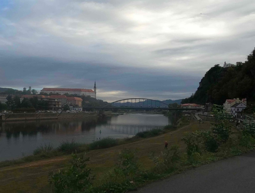 67 km – geschafft. Decin. Noch einmal die Elbe überqueren. Wir genehmigen uns in einem Restaurant mit Blick auf die Elbe und das Elbsandsteingebirge ein Bier und Tapas, Pastete, Cesarsalat. Die Speisekarte gab leider nicht mehr her. Aber um etwas Energie aufzutanken, dafür hat es gereicht.