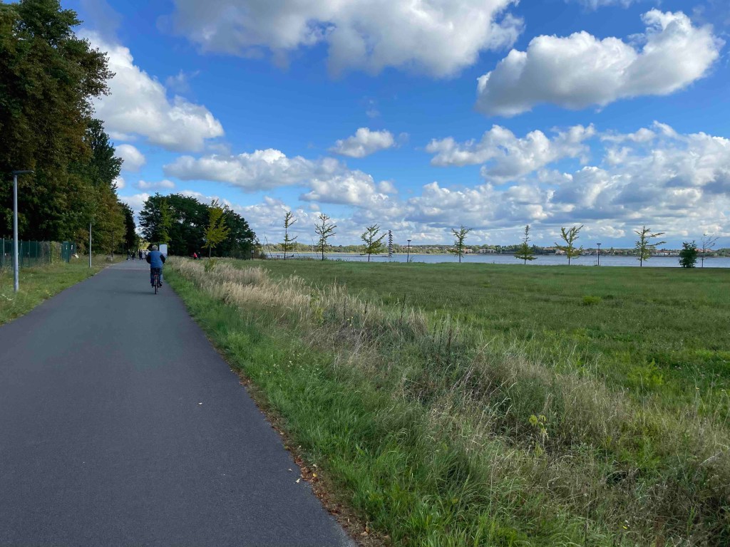 Wochenende Nr. 3 per Fahrrad nach Bad Düben. Nicht mehr ganz so warm, aber immer noch sonnig. Ich fahre mit dem Deutschland Ticket von Berlin nach Bitterfeld mit einem Umstieg von 4 Minuten in Lutherstadt Wittenberg. Hammerstress! Jedes Mal! Aber jedes Mal schaffe ich den Anschluss, weil die Züge warten, bis der Letzte eingestiegen ist. Das Fahrgastaufkommen ist sehr hoch in den Regionalbahnen seit dem es das Deutschlandticket gibt.