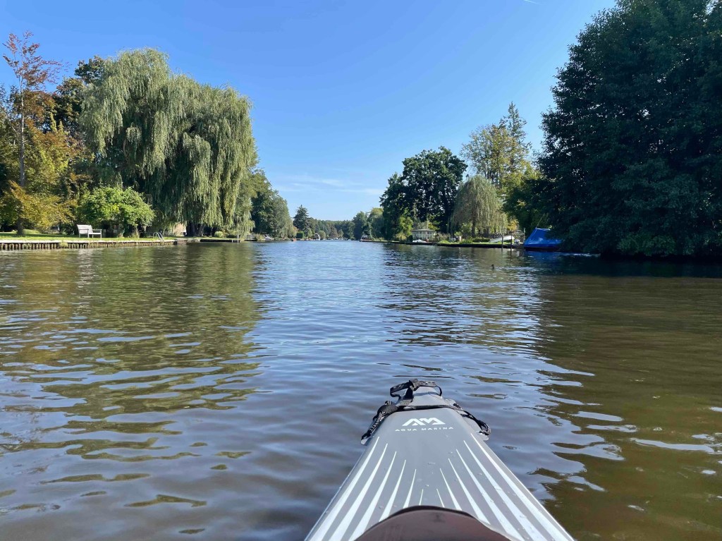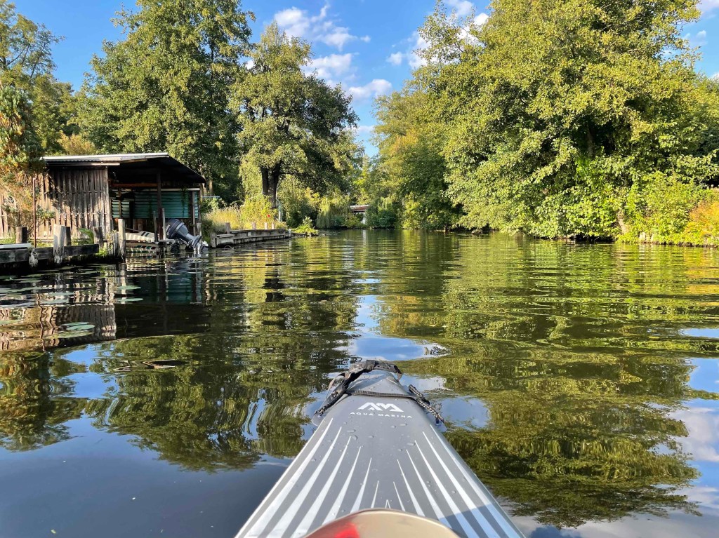 And the very next weekend we went out on the water again. This time nearby, on the Mügelspree to the lake Dämeritzsee near Erkner. A bit exhausting with all the motorboats and excursion steamers that showed no consideration for us. The waves were getting bigger and bigger. Once you’re not careful, you get a wet bottom. And again it was an unusually warm weekend.