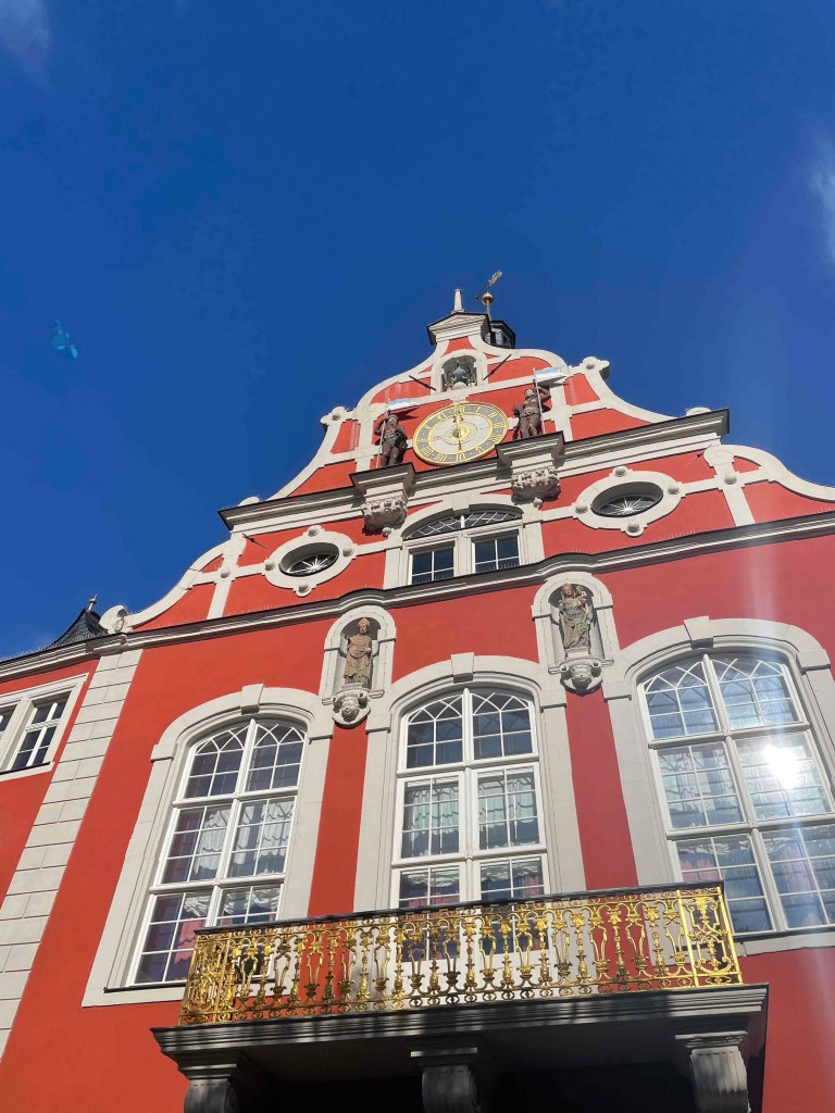 There was a flea market at the market. Unfortunately not very well attended. A wedding. The clock at the town hall chimes every quarter of an hour and the eagle from the town coat of arms flaps / waggles its wings. Very briefly. You really have to be very quick to capture this on film or in a picture.