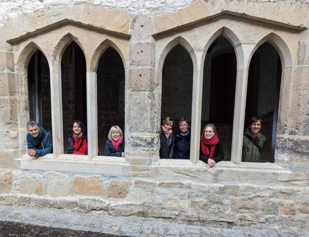 But now I had to find the restaurant in the dark where my friends were sitting and waiting for me. Every year again: the tiresome search for a restaurant. Our Hotel zur Brauerei in Arnstadt had rooms for us, but no table. How sad. Lack of staff?! Probably. Fortunately, the organiser of the 2023 meeting, Yvette, found the Burgkeller, which offered traditional, regional cuisine. Also in vegetarian for the vegetarians among us. And again, like last year, I was the last to arrive. Hungry, thirsty, tired, full of impressions from this crazy train ride from Erfurt and my walk through Arnstadt, where the pavements are folded up from 6 on a Friday evening, as they probably are every evening. It was unusually warm in Thuringia. In Berlin there was rain today and it was also very uncomfortable in other respects. Knowing that tomorrow would be the end of it, we enjoyed it on the way to the hotel.