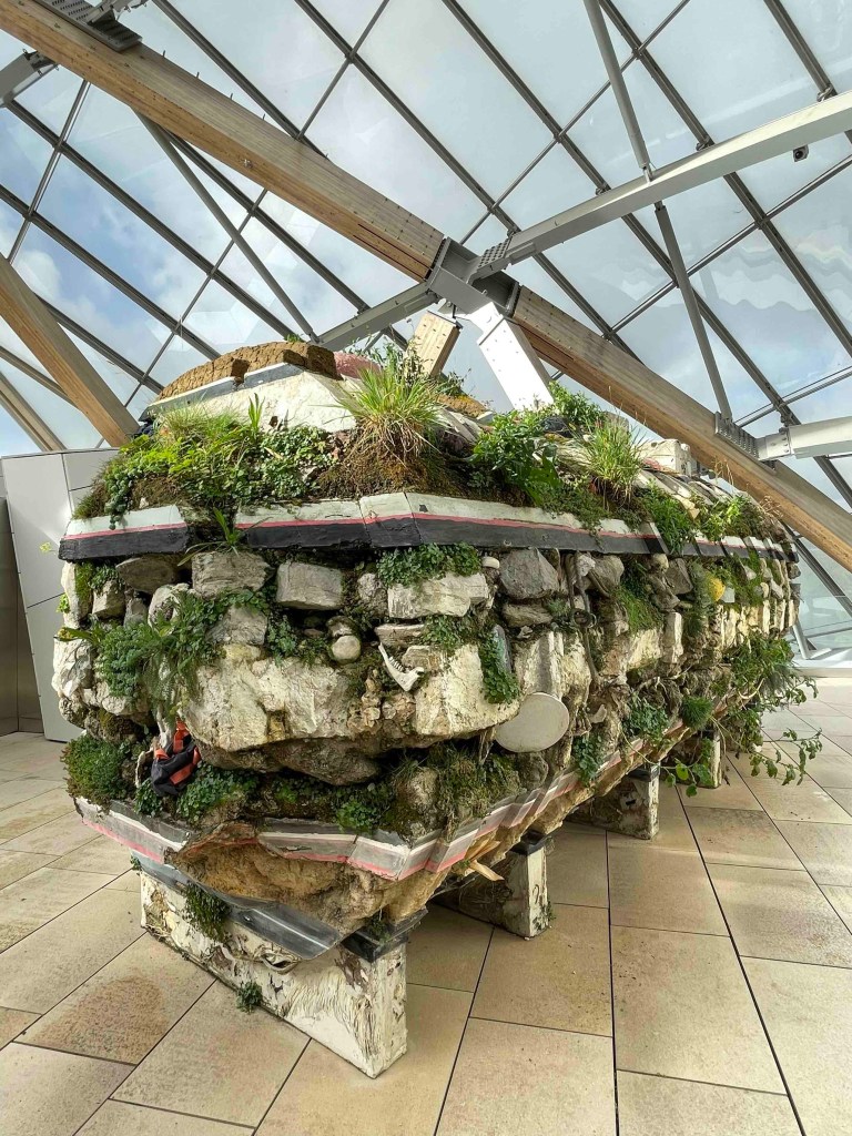 Mich interessierte die beeindruckende Architektur dieses Walfisches mehr. Zum Glück durfte man auf sämtliche Terrassen und die Aussicht auf La Défense, den Bois de Bologne genießen. Der Wind pfiff um die Ecken. Zur Fondation gehört ein Garten mit künstlichem Wasserfall. Kleine Pause auf eine der Bänke. Mit der Navette (Shuttle) ging es wieder zurück zum Champs-Elysées. Eine halbe Stunde warten. Die schienen gerade Mittagspause zu machen. Ich suchte schon die Métro Verbindung heraus… Allerdings 15 Minuten Fußmarsch. Und ich hatte heute noch einiges vor. Das heißt so viel: Geduldig weiter warten. Lass dich nicht aus der Ruhe bringen.