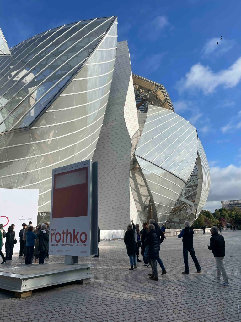 What is the Louis Vuitton Foundation? It has nothing to do with bags and fashion. The building, a futuristic structure that looks like an oversized whale, houses temporary exhibitions. At the moment, there are paintings by Marc Rothko in the exhibition rooms until April. Who is Marc Rothko? The foundation mainly brings lesser-known artists to Paris. And Marc Rothko seems to be one. I didn’t know him before. Expressionist, partly surrealist. His first works are still acceptable for a human who is only partly interested in modern art. That means that you can recognise something in them. But then it becomes abstract – Picasso-like – and at the end, which seems to be the longest period of his work, there are only 2 or 3 coloured squares, or monochrome. I sit in front of it and try to make something out. Sometimes I manage to interpret something into it. He even made it to the Tate and the MoMa with these paintings, got commissions for the Seagram Building in New York… Yes, but you really don’t need a Rothko hanging in your living room.