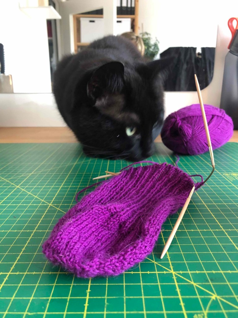 The sylkesox haul of the year 2023 is still missing. I’ve gone a bit astray. Socks became jumpers, scarves, cuddly toys. Every now and then there were a few socks in unusual designs, as always. At the moment I’m working with the leftovers from 2023 and it’s getting very colourful. And what was my best success? The mobilé for Alma, my niece.
