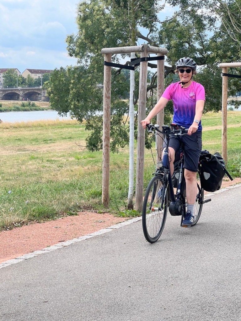 Compared to the Elbe two years ago, however, I already have the feeling that everything is much greener. Thoughts like this go through my head on the long drive to Dresden, which I wanted to cover in five hours. And I managed it in four and a half hours. I pedaled, reached the sign at the entrance to the state capital, took a shortcut across the main road and reached the banks of the Elbe again, which I followed to Dresden-Neustadt, with a view of the silhouette of the Frauenkirche and Dresden’s old town.