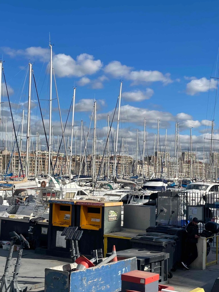 Marseille. Eine Runde durch den Vieux Port (alter Hafen), entlang einiger Museumsschiffe, gut erhalten noch funktionierend. Der ganze Hafen besteht nur aus Segelmasten. Man sieht die andere Seite kaum vor lauter Stangen. Und das Wetter? Blauer Himmel.