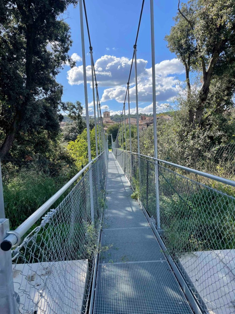 For the suspension bridge, we drove to the neighboring village of Trans-en-Provence. Ancient!!! Fulfills every cliché – Hôtel de Ville in the town center, bar tabac, petanque court, auberge … But first we have to cross the suspension bridge. Very shaky and not for people with weak nerves and a fear of heights. Once we reached the other side, we met a group of hikers walking along the Suite du Boucle. No idea where it goes and how far it runs. That’s why I have the Komoot app. But Komoot doesn’t know this hiking trail. I plan it myself and lead us over various bridges over the Naturby and thundering waterfalls to Trans. Middle Ages No. 2.