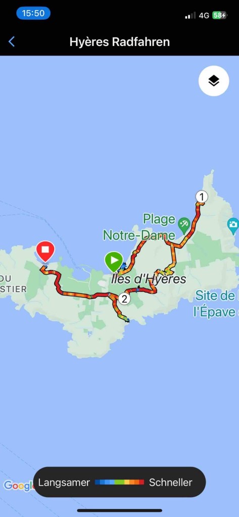E-bike was the right decision. There are quite a few climbs to master on this small island. Unbelievable. And the condition of the paths – mostly gravel, thick roots. Uphill in turbo, downhill you get really shaken up.