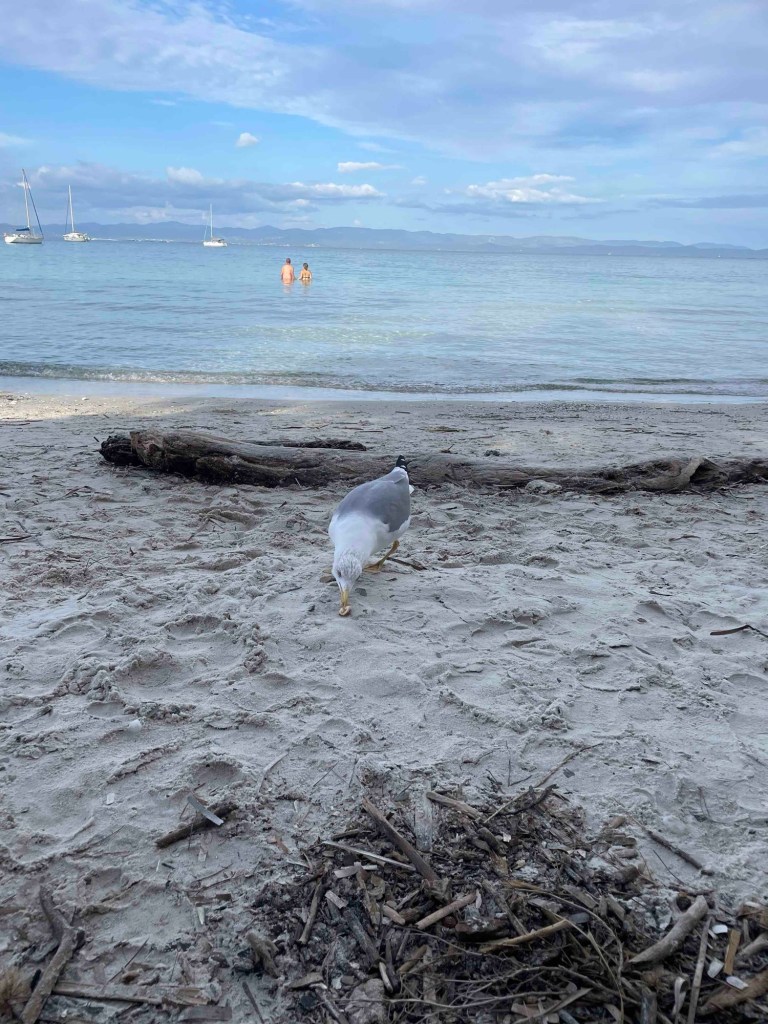 An der Stelle müssen wir leider umplanen. Die Wege, die mir mein Komoot Reiseplan vorschlägt, sind für Radfahrer nicht befahrbar. Die Zeit schreitet fort. Wir müssen um 17 Uhr die Räder wieder abgeben und wollen die Fähre um 17.30 Uhr zurück nehmen. Die gesamte Insel schaffen wir nicht zu erkunden. Von dieser Idee muss ich mich leider verabschieden. So genießen wir lieber noch einmal ein Bad im Meer. Und das tat uns sehr gut!