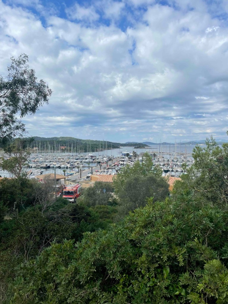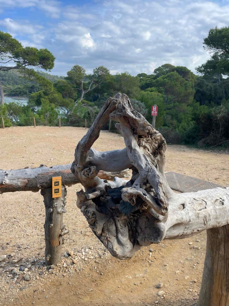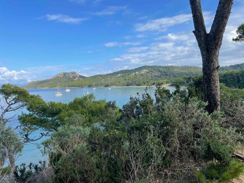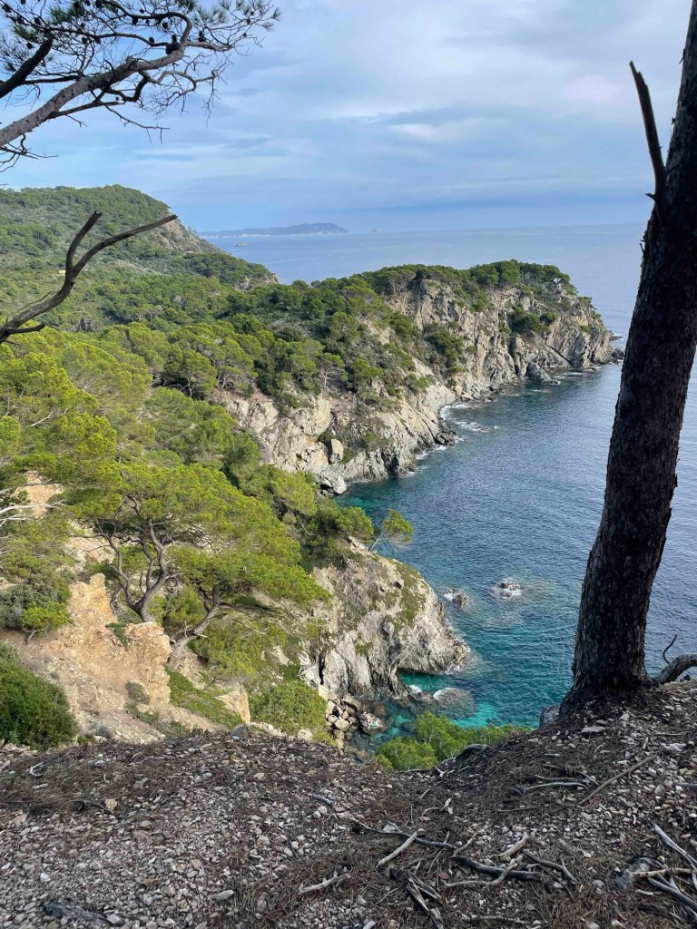 Towards the steep south coast, the paths were no different, but they were emptier. Hardly any pedestrians or hikers. The occasional fast cyclist. We reach the steep coast with a view of the calanque – a rocky bay.
