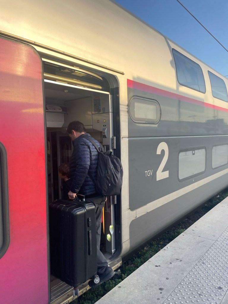 The TGV from Marseille departs on time. We explore the phenomenon: Where are the sockets? (hidden under the tables) How do you get to the toilets? (You can only walk through the entire train on the upper floor.) We’re a bit cramped downstairs. And opposite annoying children. The landscape races past us. Unfortunately, it’s getting foggier and foggier. No Mont Ventoux in Avignon to be seen. The bridge only dimly. A sad melody from The Godfather is playing through my headphones as I write this blog. Matching my mood. What remains? Such fond memories, this blog, a few Netflix movies until Karlsruhe. We’ll manage the 6 1/2 hours. Oh, and not to forget: Jean de Florette by Marcel Pagnol brings back my fond memories. In French!