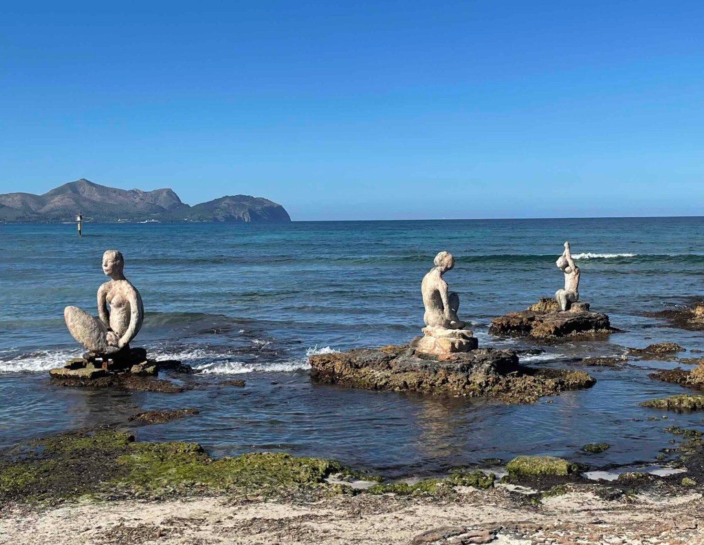 Die Tour war dennoch sehr schön. Der Familie hat es gefallen. Nach 7 km Fußmarsch kehren wir in einem Restaurant in Can Picafort ein. Direkt am Strand und auch dort sind diese Skulpturen zu bewundern.