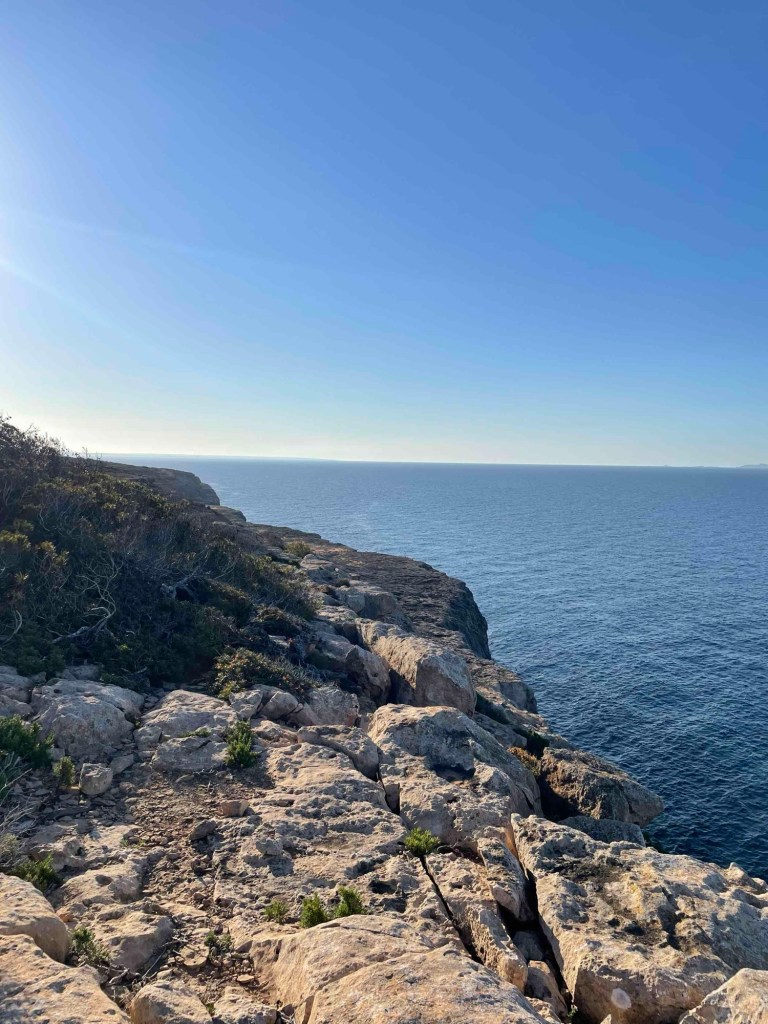I unload him at the airport and quickly drive on to Cap Blanc. I have to see the sunrise. At 7 o’clock. Unfortunately, I was 5 minutes too late. Nevertheless, the atmosphere around the lighthouse at Cap Blanc was fantastic. After a small breakfast, I set off in the direction of Cala Pi – the bay we visited the day before and the family stopped me from being adventurous and moving around.