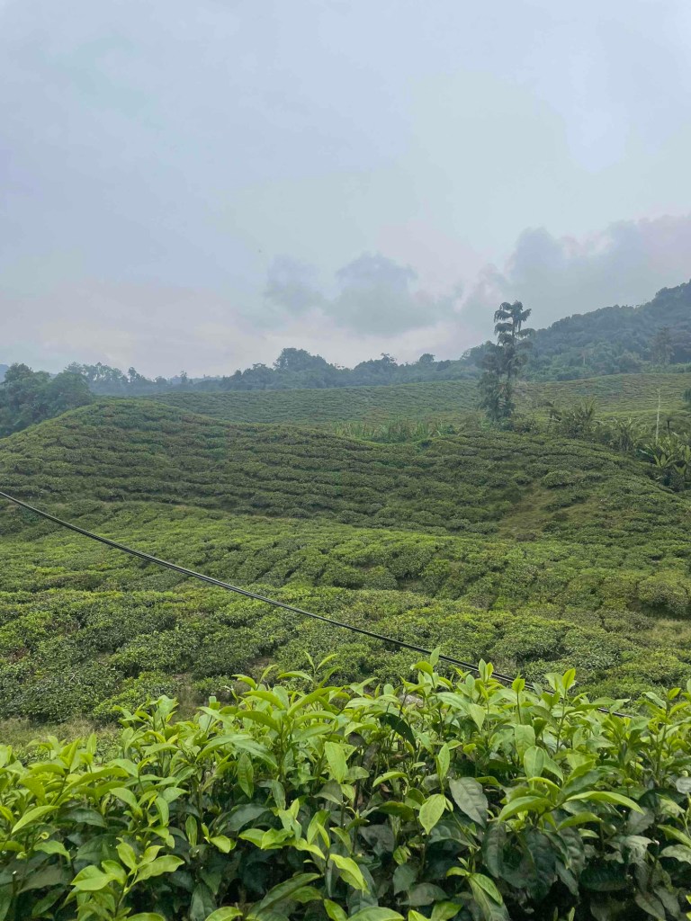 Our plan: visit tea plantations and the supposedly oldest rainforest in the world. Sounds easy. It’s not. We get stuck in traffic—an hour of stop-and-go. Maybe even longer. The GPS sends us toward Mossy Forest, but we end up in the tea plantations, take wrong turns, drive up and down narrow, winding roads, constantly pulling over to let oncoming cars pass. Things are getting interesting. Motorcycles and scooters squeeze through. It’s unbelievable how many people are on two-wheelers.