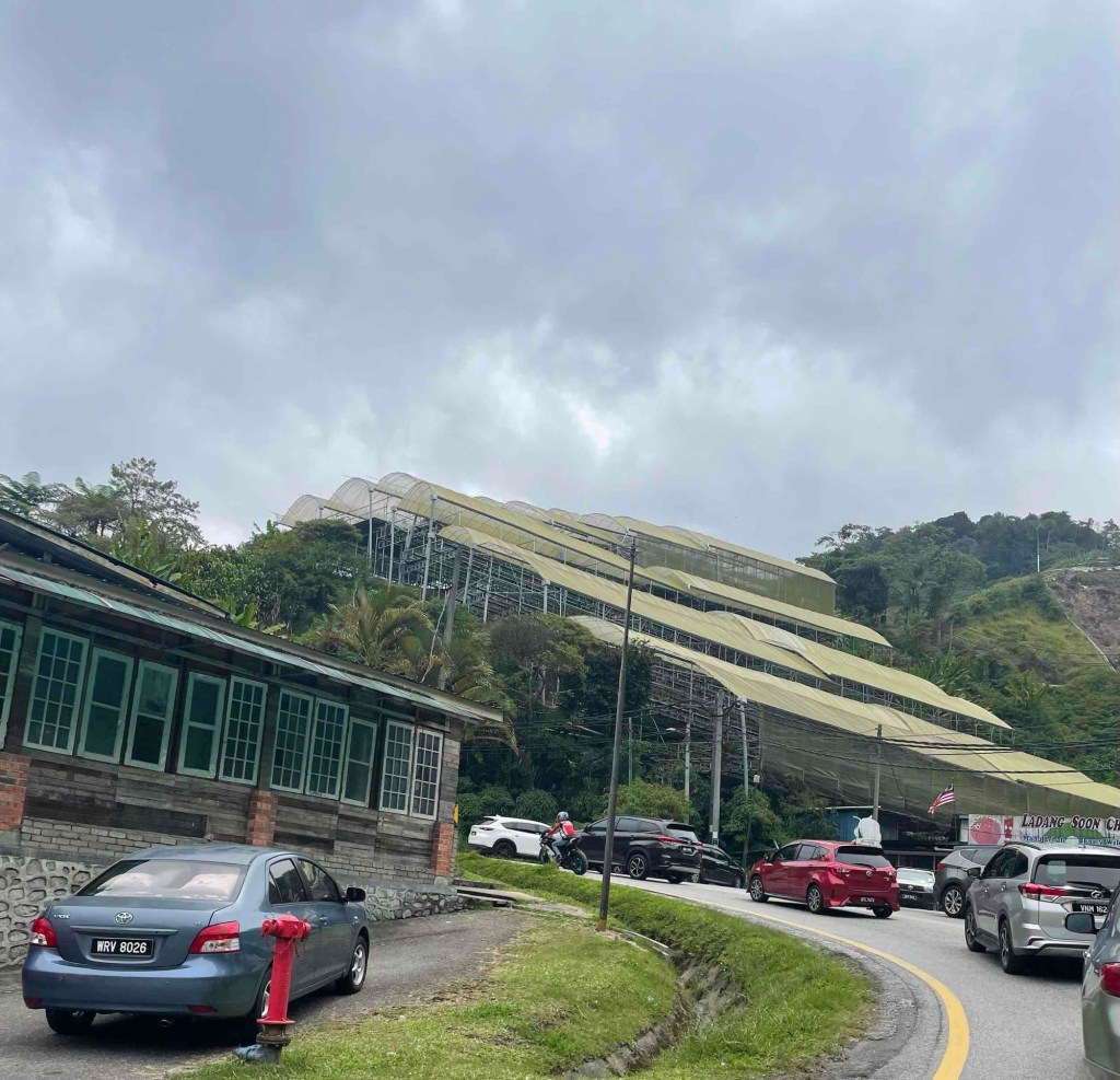 We continue toward Brinchang. I had imagined nature here, maybe a little hike. Instead, greenhouses line the road, spoiling the view.