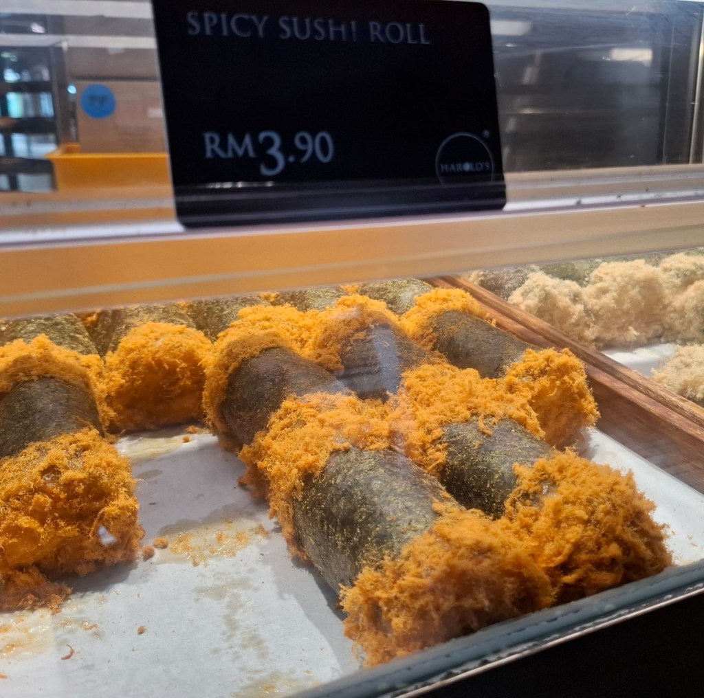 At one of the few highway rest stops, we took a break. Driving on the highway for too long makes you tired. Once again, there were rows of food stalls, fruit stands, and a café. We stocked up on various fruit and pastries and sipped a cappuccino. At the bakery stand, they also had a kind of spicy sushi — looked crazy. We tried it. But what was this?! The top layer tasted fishy, but when you bit deeper, you hit sweet dough filled with custard. I had to shake myself — that was definitely a wrong turn for our taste buds.