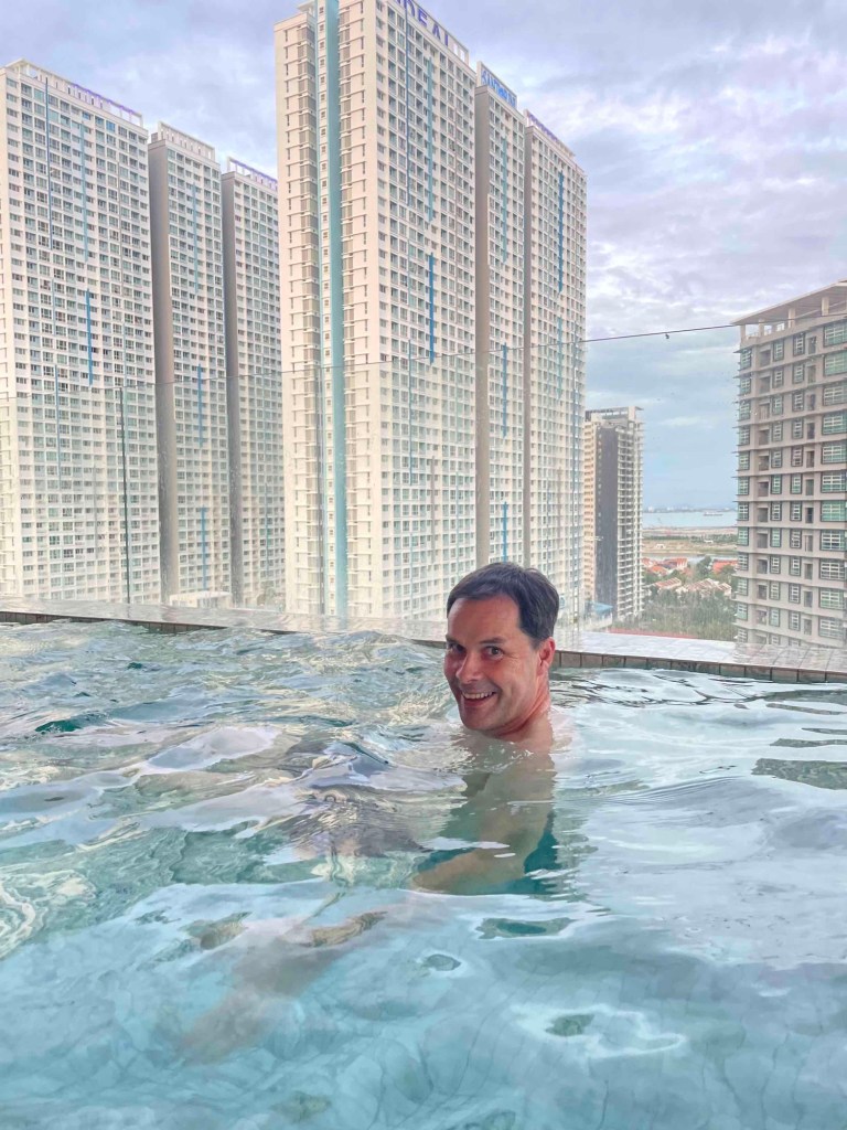 North of Georgetown, we found our accommodation at Hotel Citadines — brand new. Of course, also a high-rise, surrounded by many others. Our room: huge, clean, with a view of the high-rises — and not completely blocked yet, so we could still see some water. On the 15th floor, there’s an infinity pool. It was still open — so in we went before it closed at 8 p.m. With that view, I felt like I was in Miami. I’ve never been there, but that’s how I imagine it.