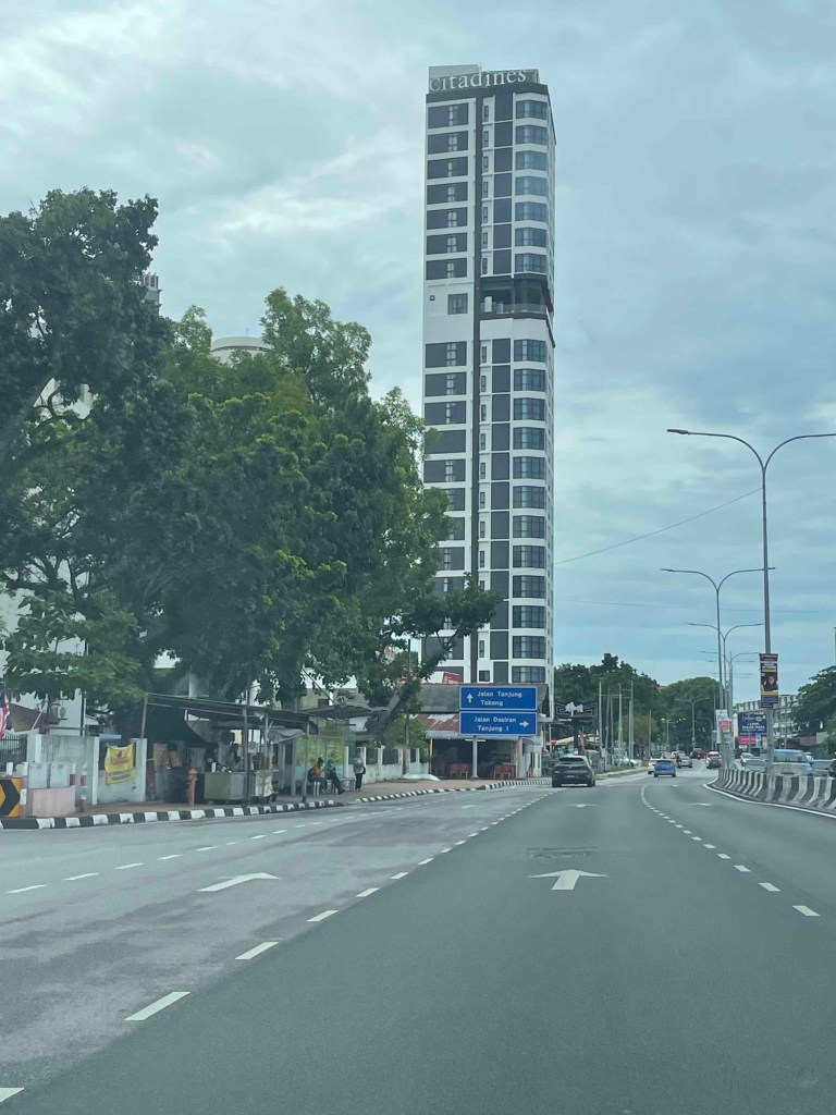 The closer we got to the city, the more hotel high-rises appeared. In Batu Ferringhi — a well-known beach resort — tower after tower lined up. It’s not pretty.